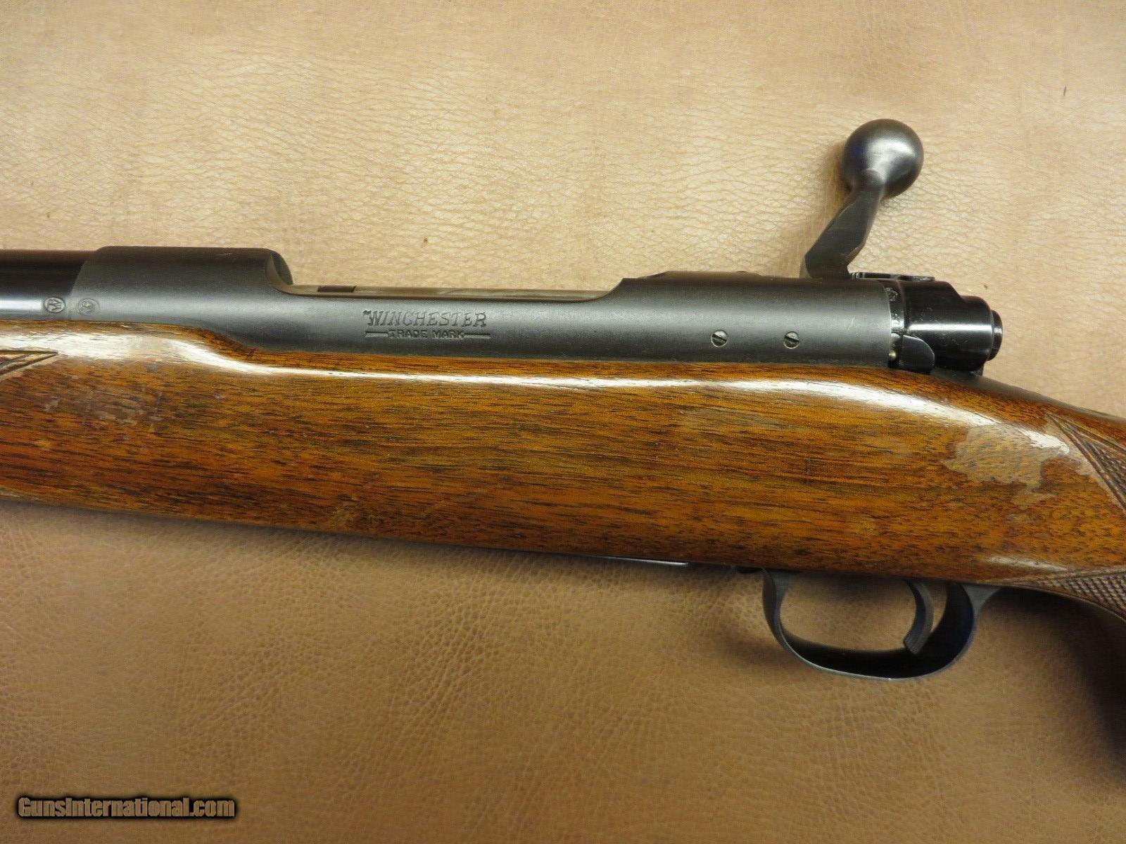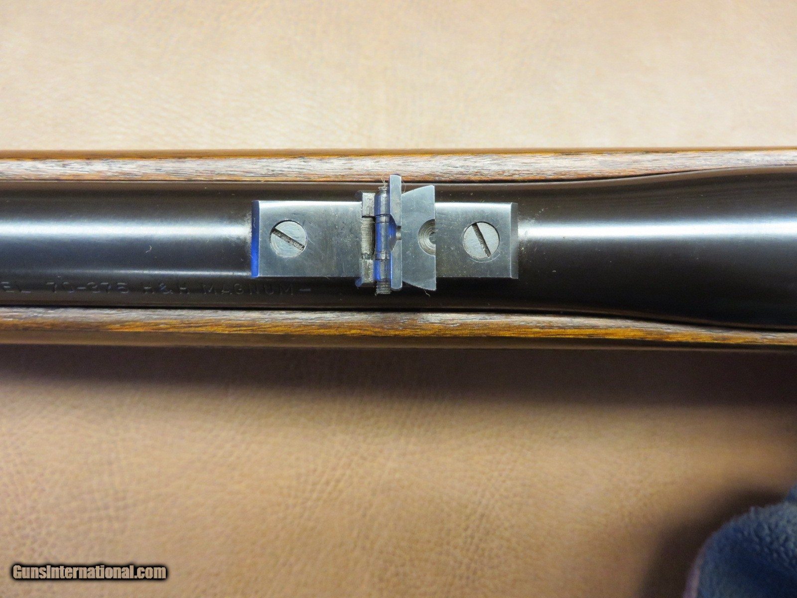 Description: .375 H&H Magnum has 25 inch barrel with original sights including front hood and 2 leaf rear. Serial number 297xxx. Checkered walnut stock with sling swivels and original rubber butt pad. Blue is 95%+ and the wood finish is flaked to about 85%. SOLD |