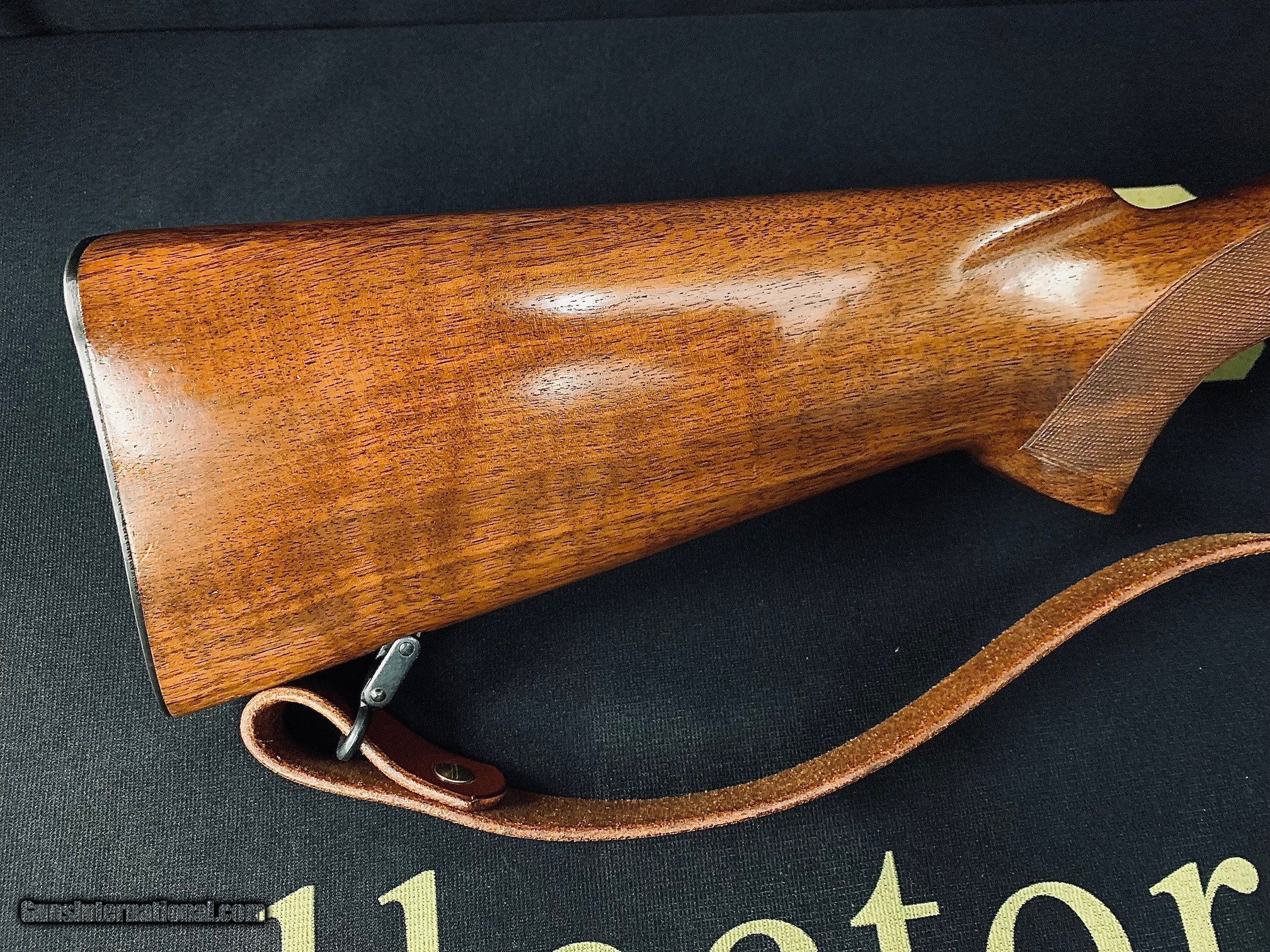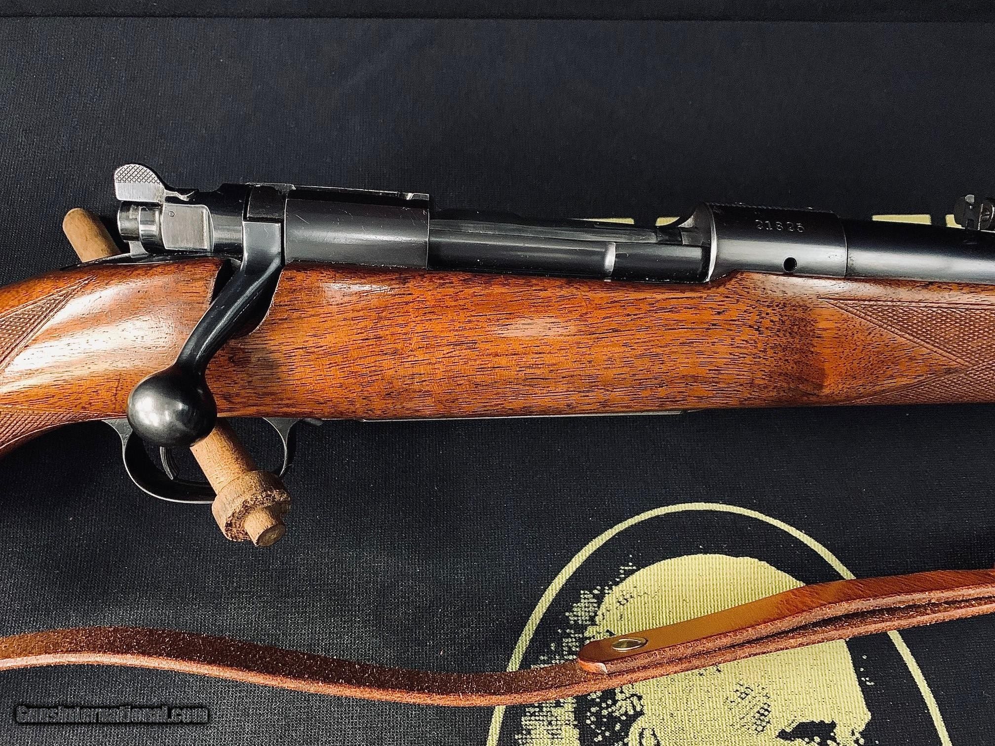 Description: ((ATTENTION)) Winchester collectors !!! Introduced in 1936 to the american market, This is a Winchester Pre-War Model 70 bolt action rifle. Manafactured in 1938. Chambered in .257 Roberts. Controlled round feed. All oringinal condition. Special ordered with super grade sling mounts. 24 " barrel with sights. This rifle is a rare caliber and extremely hard to find. Stock is crack free. Checkering is sharp. Includes a nice leather sling with the rifle. This rifle is truely a masterpiece and a breathtaking collector piece! For more information about this rifle or for purchasing ((( PLEASE GIVE US A CALL AT ))) 1-(479)-968-4106. PRICE - $4,500. + Shipping SOLD Rifle Caliber: .257 Roberts Manufacturer: Winchester Model: 70 Pre 64 Pre War Serial Number: 21825 Barrel Length: 24 Condition: 98% Plus Action: BOLT Sights: RIFLE SIGHTS Manufacture Date: 1938 Extras: Leather Sling |