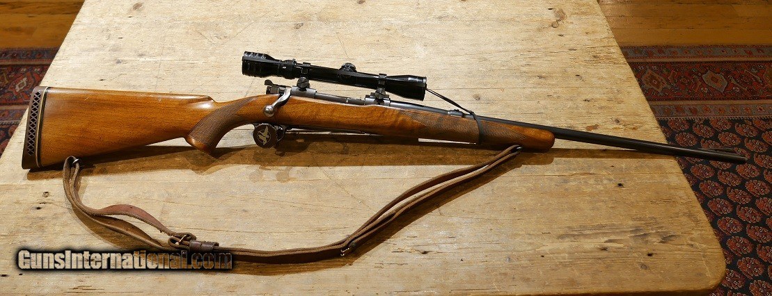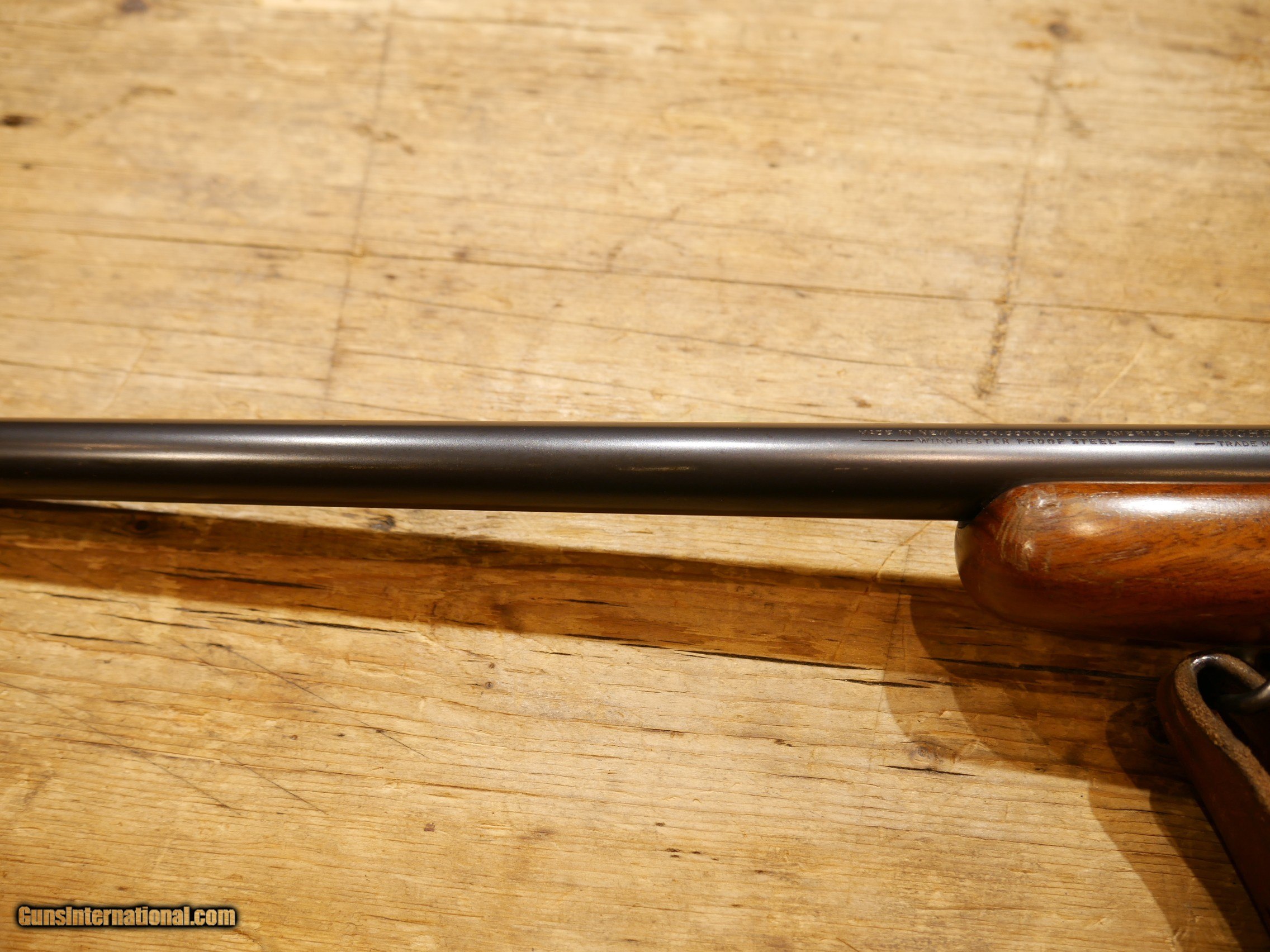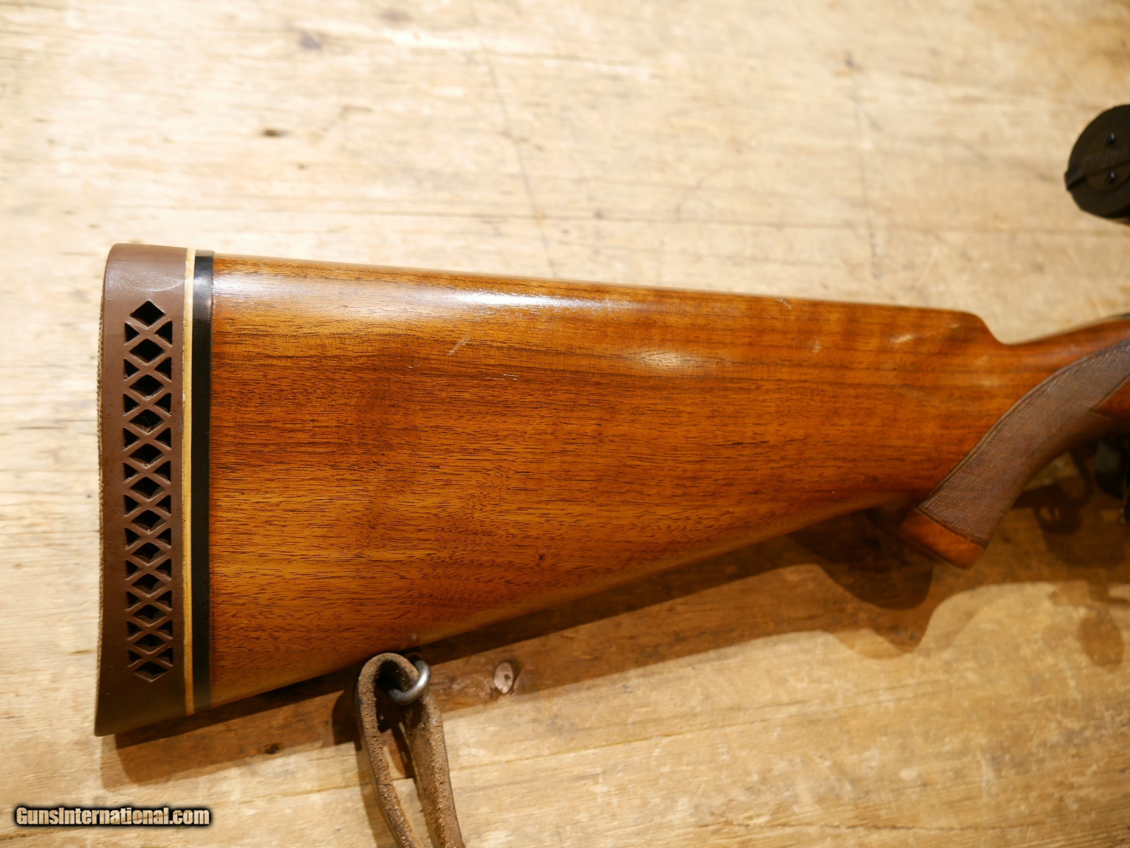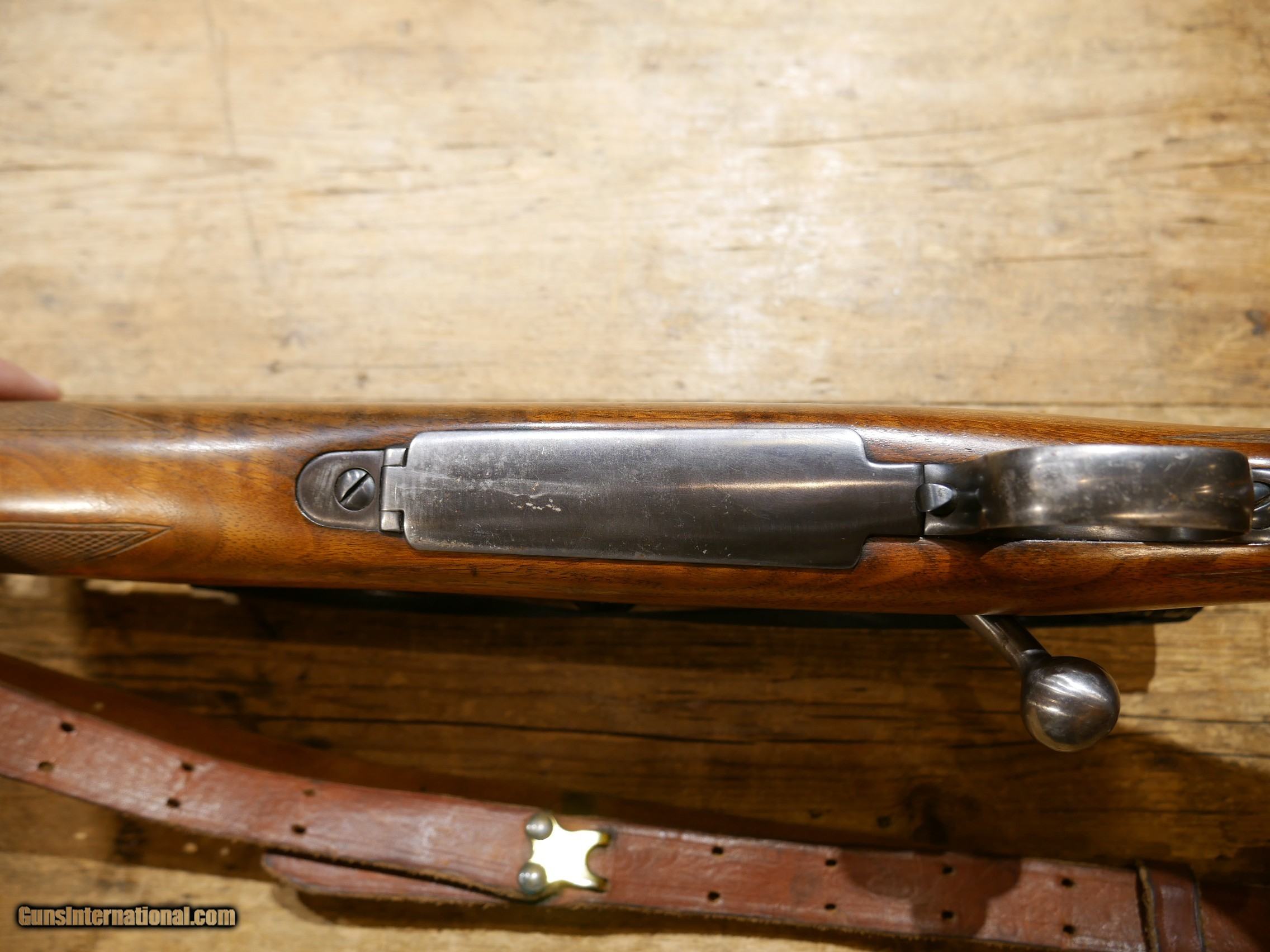 Description: Winchester Model 70 bolt-action rifle in .30 Gov't '06 (.30-06 Springfield). 24" barrel with original front sight (missing hood) and blank in the rear dovetail. Redfield 2-7X scope mounted in Kesselring mounts. Cloverleaf tang and wing-safety. 14" LOP to a White Line pad. DOM 1941 This beautiful 70 is in very good overall condition and will make a great hunter or shooter. The wood is in very good condition considering its age with only a few light marks to the wood and no cracks. Bluing is in good shape with only light scratches and a few small scattered pits. Receiver is strong and smooth with a little light pitting or flaking on the left hand side. Bore is excellent, shiny with strong lands and grooves. This is a great example of the greatest American bolt rifle in the greatest caliber! Please call or email with any questions. Must ship to FFL. ***$35 SHIPPING AND INSURANCE*** ***NO CREDIT CARD FEES*** ***NO WARRANTIES IMPLIED OR EXPRESSED*** SOLD Manufacturer: WINCHESTER Model: 70 Caliber Info: .30-06 SPRINGFIELD Condition: USED, VERY GOOD |
