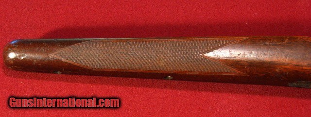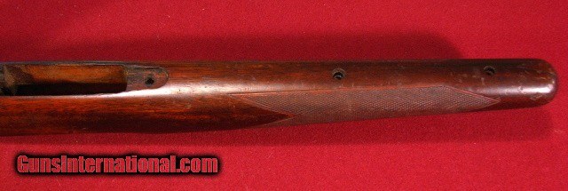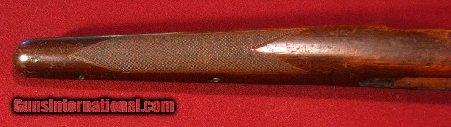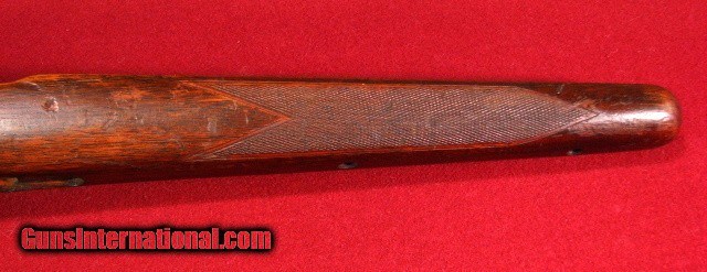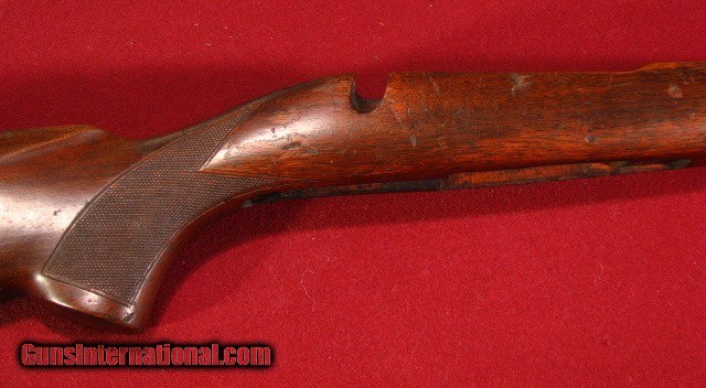 Description: Winchester Model 70 Pre-War Stock with cloverleaf tang. All original, uncut, and solid without cracks or previous repairs. It does have multiple dents and dings as pictured but most should raise and an excellent restoration candidate. No hardware except buttplate. These Pre-War stocks are getting almost impossible to find. SOLD |