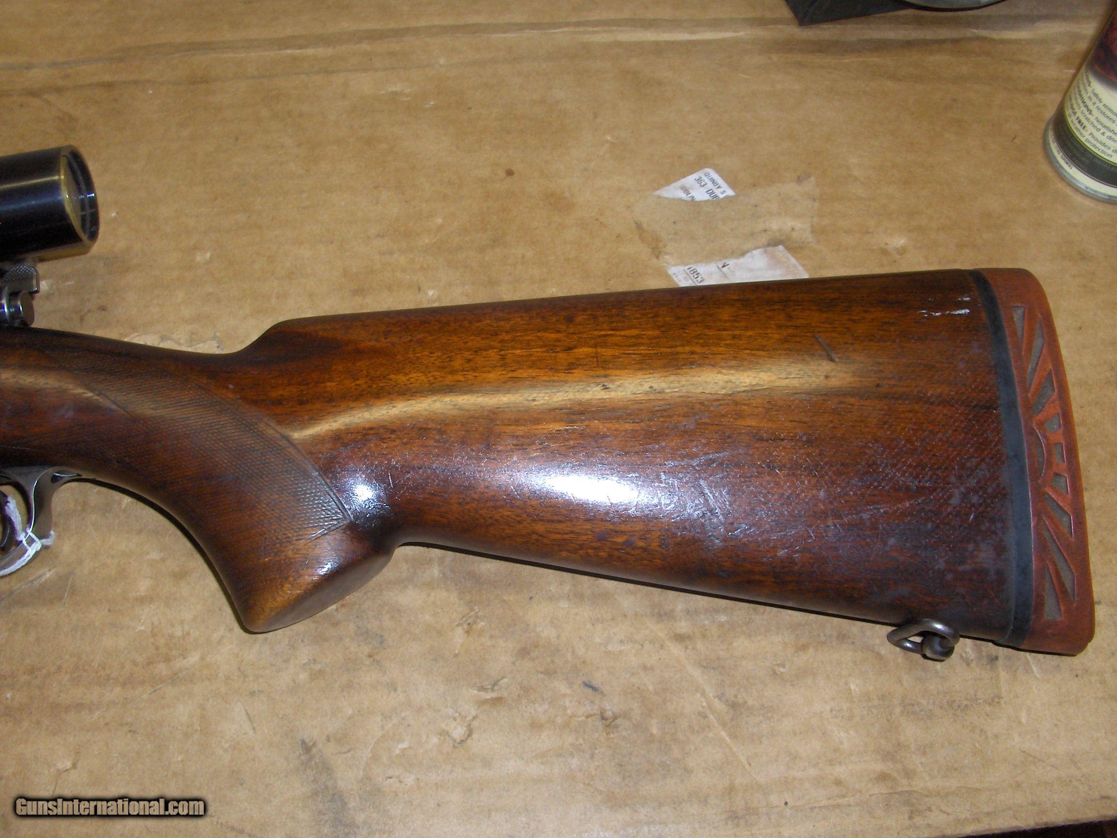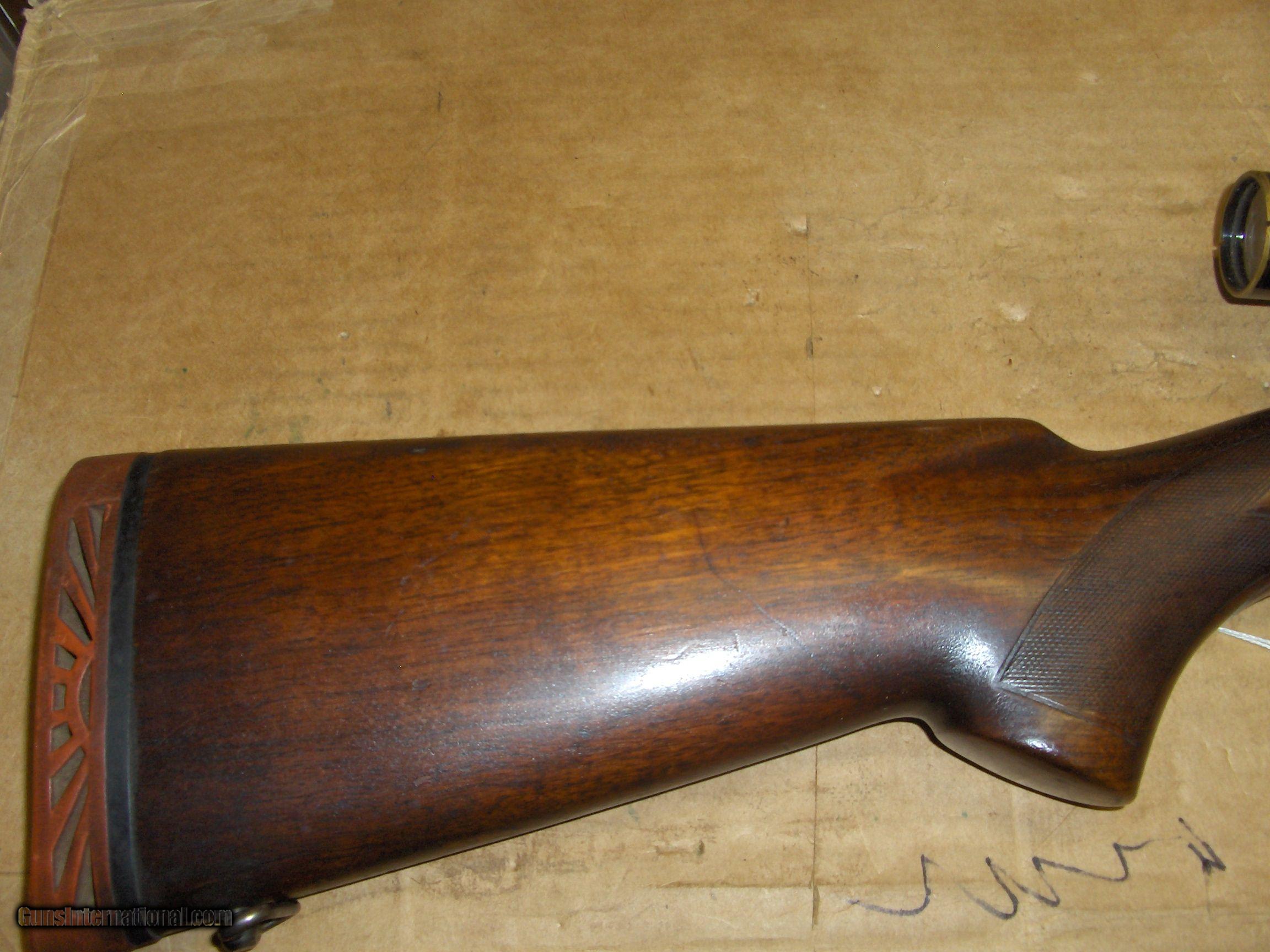 Description: Born in 1937 this 70 is the ultimate 60's hunting machine. Start with the Riflemans rifle. Add a Weaver 4X on a flip mount and a receiver sight and an Ithaca sun burst pad. Used for many years by a north central PA resident. I purchased it from his grandson. Caliber 30-06 SOLD |