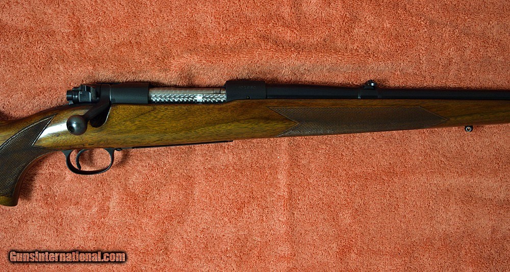 Description: Winchester Model 70 SN# 401860 Made in 1957. Up for sale is a clean Winchester Model 70 standard weight chambered in the new .243 cartridge, Introduced in 1955, the .243 was mostly marketed in the featherweight version which makes these standard weight models more rare. This rifle has been dressed up with a jewelled bolt and magazine follower. All metal parts display bright factory original blued metal finish. The stock carries the steel buttplate. Please add 40.00 freight and insurance. No Calif. buyers please. SOLD Curio/Relic: Yes |