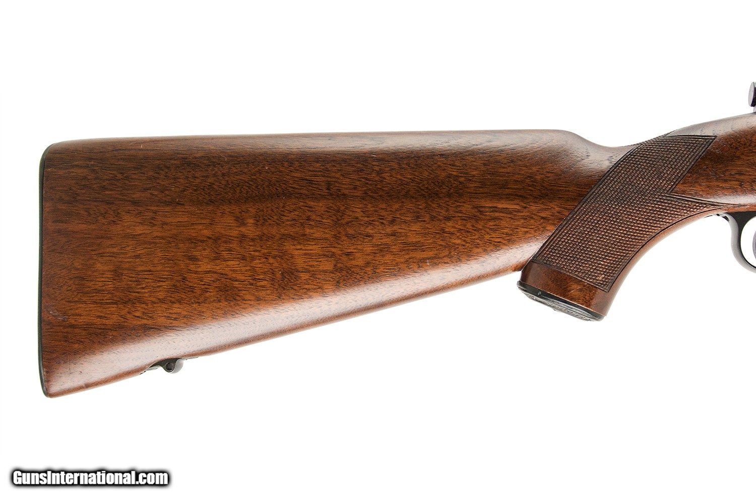 Description: #133234 MADE `1950 26" THAT HAS BEEN TAPPED ABOVE CALIBER MARKING FOR LYMAN MOUNT GREAT BORE EXCELLENT CONDITION WITH LIGHT WEAR 8LBS 14 OZ 13 5/8 LOP STEEL BUTT PLATE SOLD |