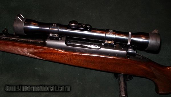 Description: WINCHESTER PRE 64 MODEL 70 FEATHERWEIGHT .3006 BOLT ACTION RIFLE, 1961 MFG DATE, 22" BBL, FULL LENGTH EXTRACTOR, SINGLE TRIGGER, MEDIUM DARK WALNUT, PISTOL GRIP, M/C COMB, LOP 13 1/4, 7LBS 14OZ WITH SCOPE, WEAVER KV SCOPE, HOODED RAMP FRONT, ADJ FOLDING REAR, 98% ORIGINAL BLUE, EXCELLENT BORE! SOLD |