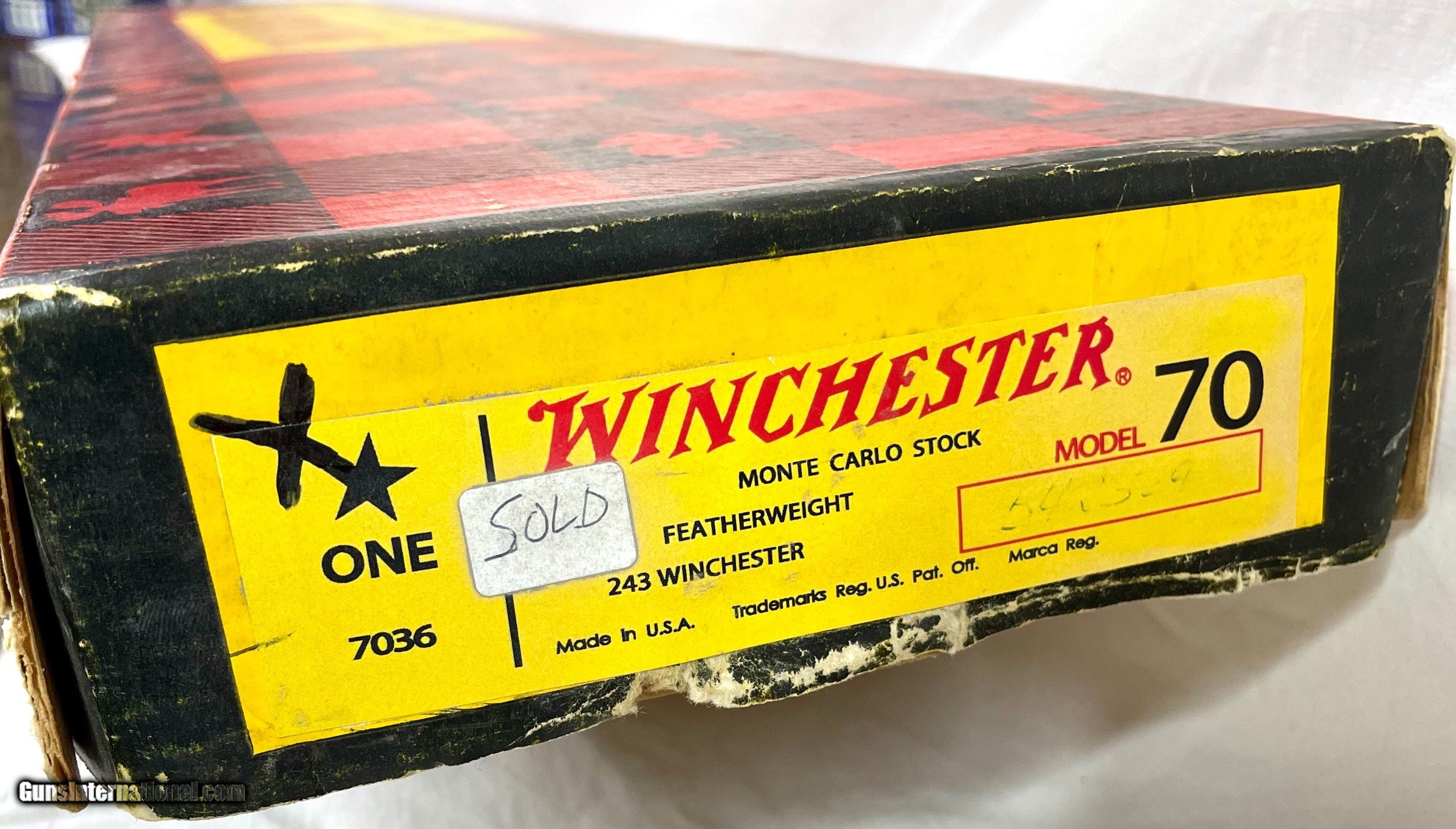 Description: For sale I have another fantasic pre 64 Winchester. This one is a Model 70 chambered in 243 cal and it is a featherweight model. These are sweet little rifles that are very light and are a hunters dream. This one has never seen the field and it is still new in its original box. As always I guarantee this rifle to be 100% original and there will be a three day inspection period given also. Please don't hesitate to ask any questions or request more photos. SOLD Curio/Relic: Yes Rifle Caliber: .243 Winchester Manufacturer: Winchester Model: 70 Manufacture Date: 1963 |
