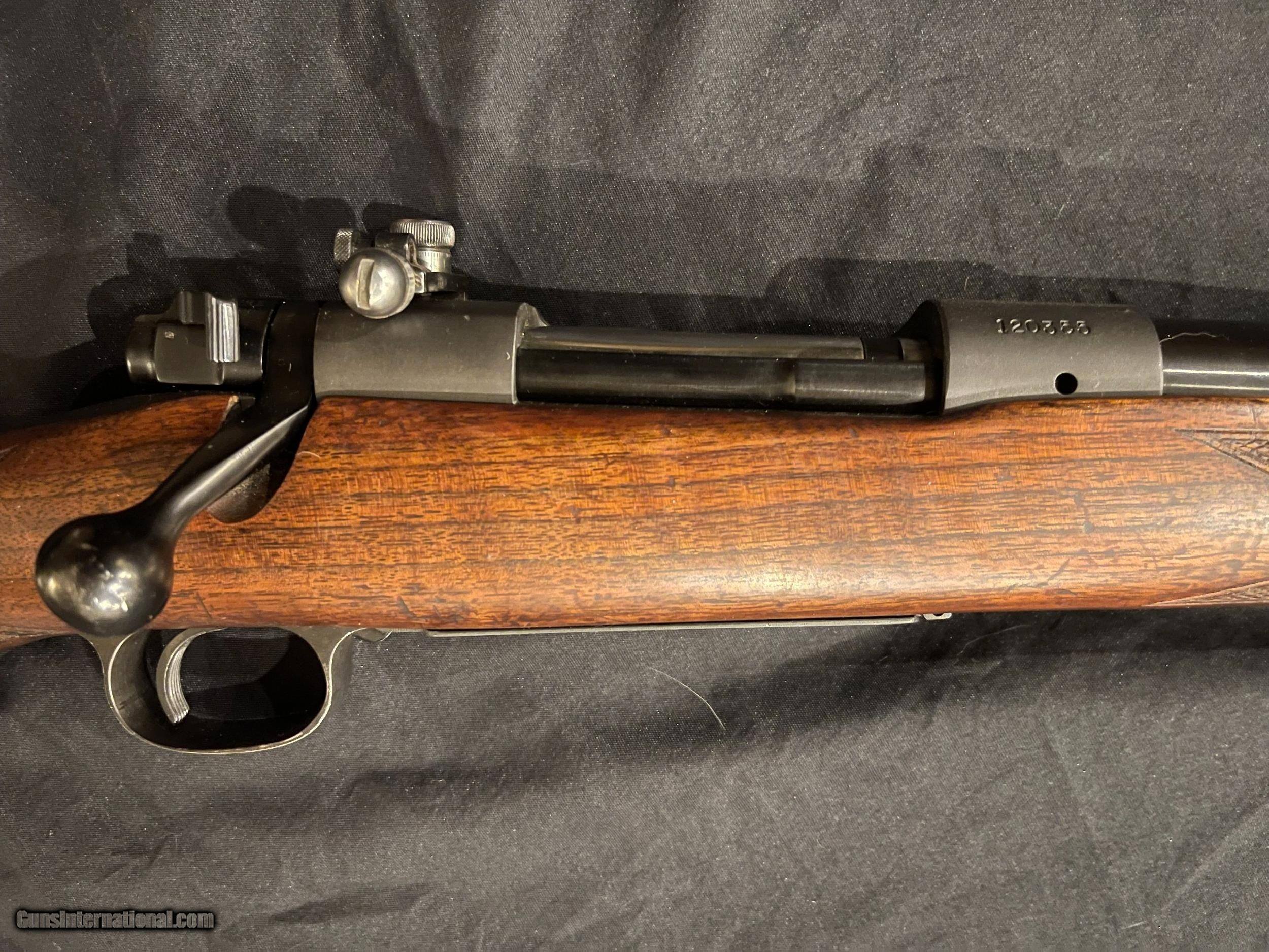 Description: A really nice pre64 standard weight rifle from 1949. The metal finish is very good with no pitting or significant blueing loss anywhere. Stock has oil finish. Original metal butt plate. The bore is extremely nice. I tried to take a picture but it is so bright my camera could not adjust to the light. Rifling appears as new as well as I can estimate what new looked like in 1949. I have no idea how this barrel was maintained so well over the decades. The rifle is shown with a Redfield 70' peep sight which does not require an inleting of the stock. I will sell the rifle with or without the sight. A $100 discount if the peep is not desired and I will put on a standard Lyman 6 folding sight dovetailed into the sight blank on the barrel. The price includes insured shipping to your FFL. Additional pictures upon request. 3 day inspection allowed but if the gun is transfered then it cannot be returned. SOLD Curio/Relic: Yes Rifle Caliber: .270 Winchester Manufacturer: Winchester Model: 70 Barrel Length: 24 |