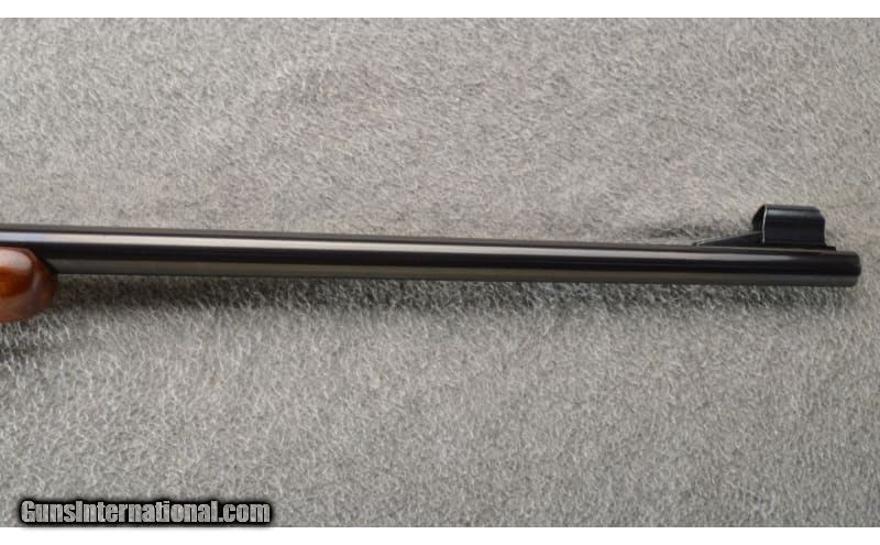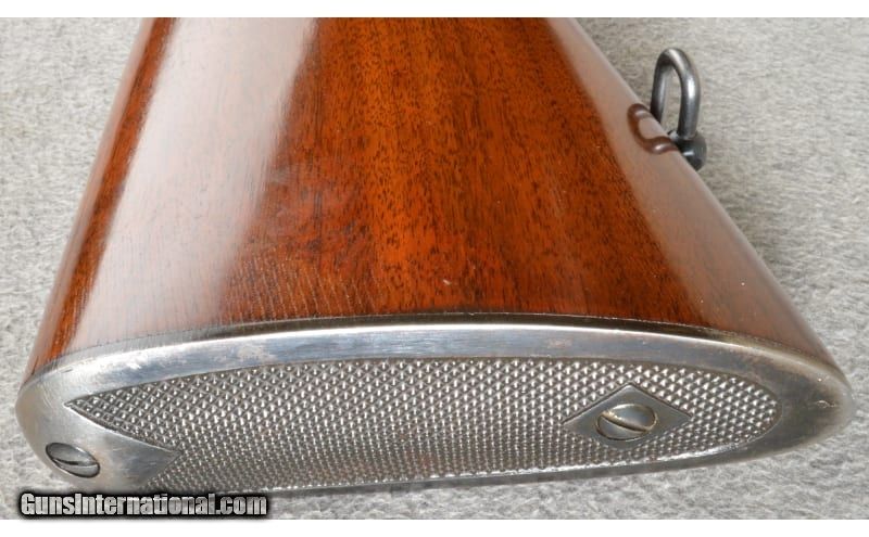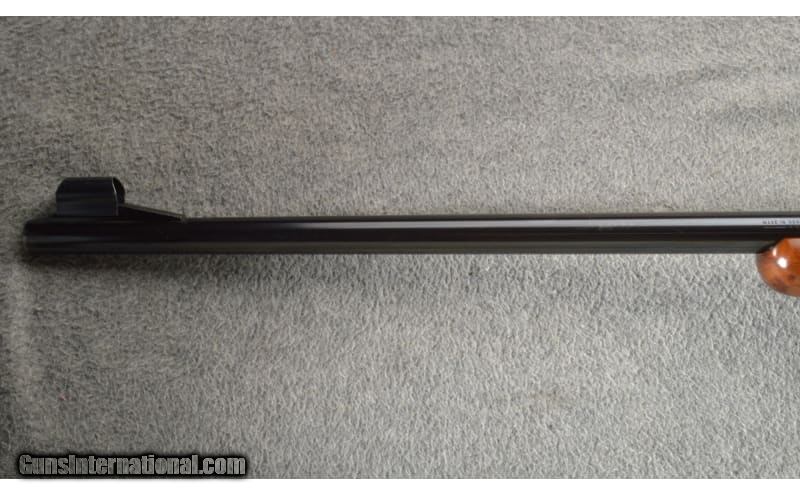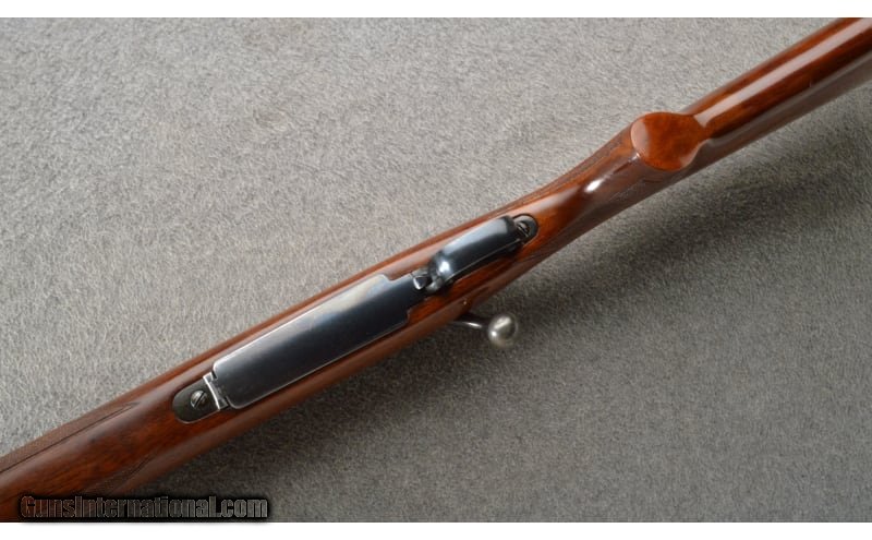 Description: 1954 Model 70 Winchester. Markings and features: The left side of the barrel is marked "MADE IN NEW HAVEN, CONN. U.S. OF AMERICA / -WINCHESTER PROOF STEEL-", "WINCHESTER / -TRADE MARK-", "MODEL 70 – 270 WIN. -" in front of the rear sight boss and at the rear with an ovalled "WP" proof at the rear, found again on the left of the receiver's chamber ring. The left side of the receiver is marked "WINCHESTER / -TRADE MARK-". The right side of the receiver's chamber ring is marked "283837". The bolt body is not marked and does show finish loss at bolt knob. The front sight is a beaded blade dovetailed to a hooded, textured, ramped base fixed to the front of the barrel. There is a boss at the rear of the barrel which has a dovetail flip up sight. The top front of the receiver is drilled and tapped. The left-rear of the receiver is drilled and tapped. The stock is one-piece hand checkered walnut with a pistol grip, straight comb, sling swivels front and rear, and a checkered blued steel shotgun-style buttplate. The checkering is well-defined, there are no chips or cracks. The metal butt plate has finish wear at the heel and toe with well-defined checkering. Overall, this Winchester is in very good/excellent condition for its age. .270 Winchester SOLD Chambers: 4+1 bolt action. Wood Condition: 98%. Bore Condition: Bright strong bore. Barrels: 24" barrel. Triggers: Single trigger. Stock Dimensions: LOP 13.5". Fore End: Smooth checkered. Butt Pad: Metal. Weight: 8.5 lbs Item Location: Owatonna, MN |