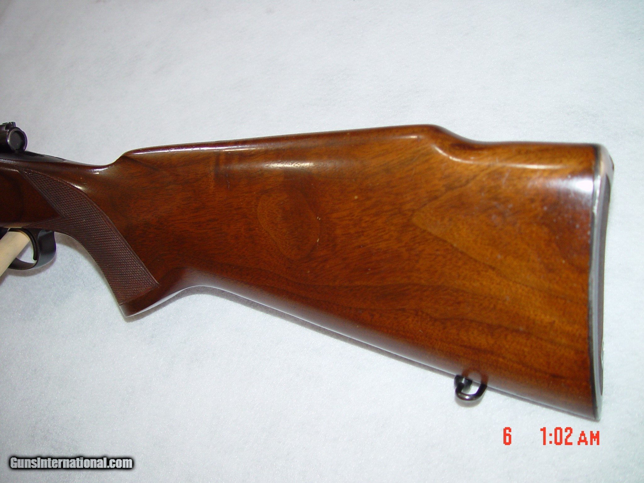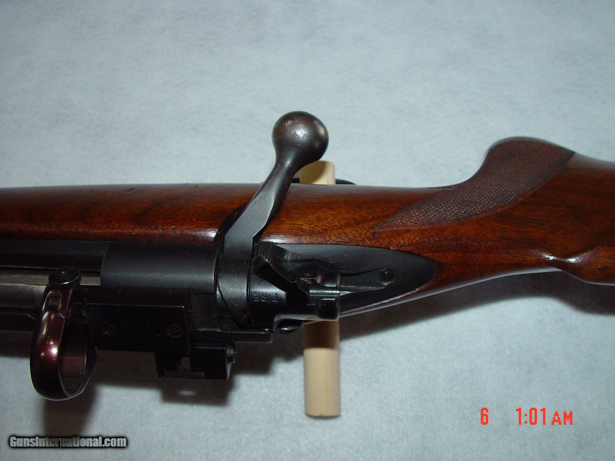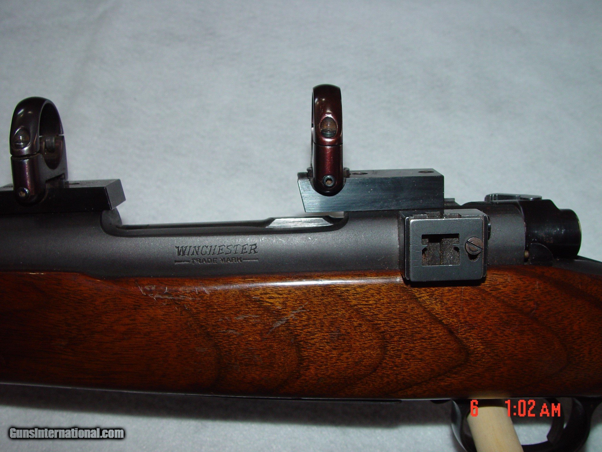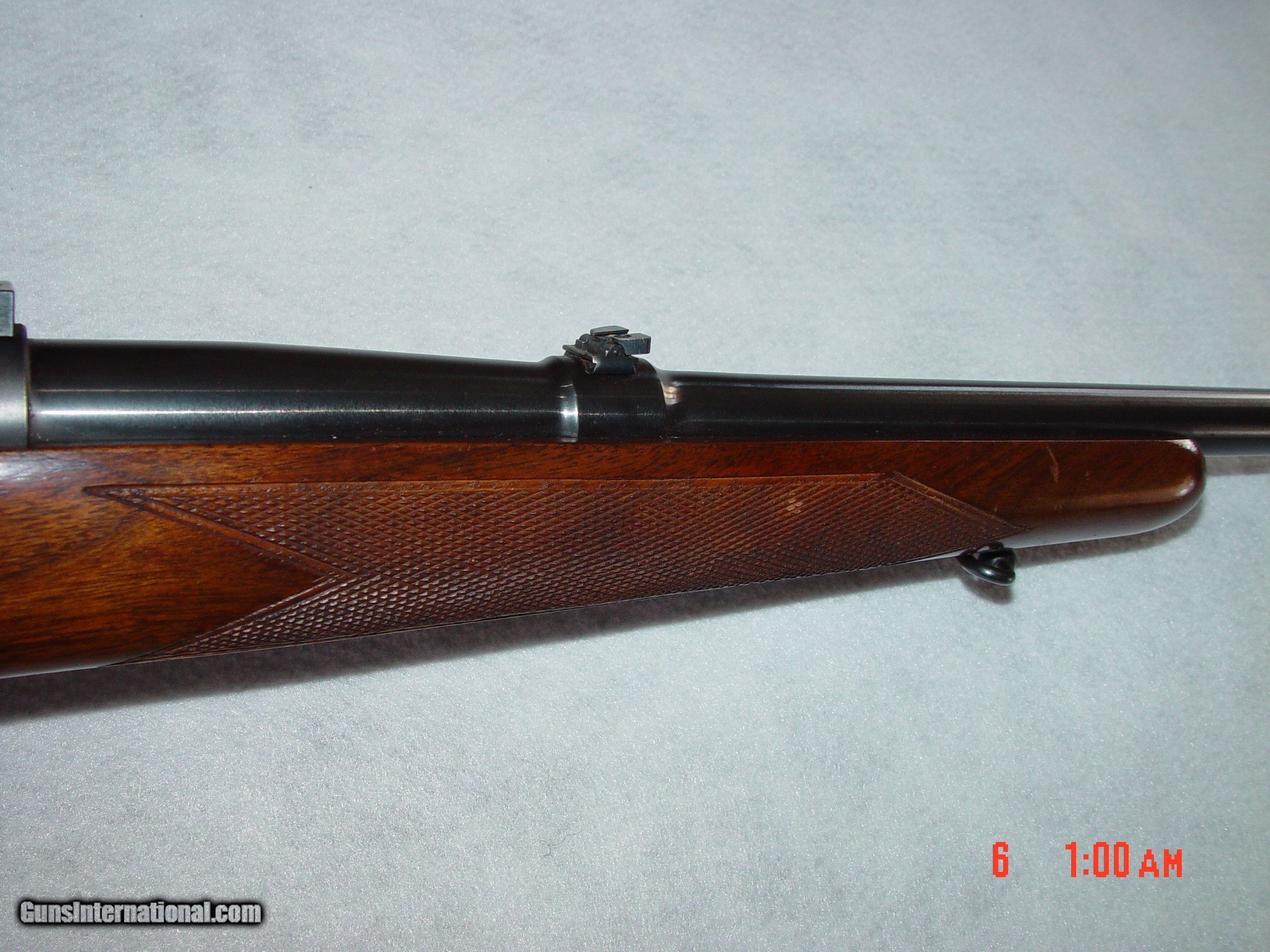 Description: BUILT IN 1953, THIS MODEL 70 IS IN EXCELLENT CONDITION WITH ALL ORIGINAL BLUING SHOWING LITTLE TO NO DAMAGE EXCEPT SOME LIGHT BLUING WEAR ON THE BOLT HANDLE, THE METAL BUTT PLATE, AND A LITTLE ON THE FLOOR PLATE. THE GUN COMES WITH LEUPOLD RINGS AND BASES AS WELL AS AN ORIGINAL BASE FOR A SIDE MOUNT RECEIVER SIGHT. THE WOOD SIMILARLY HAS SOME LIGHT HANDLING MARKS BUT NOTHING OVERLY DAMAGING. SOLD Curio/Relic: Yes |