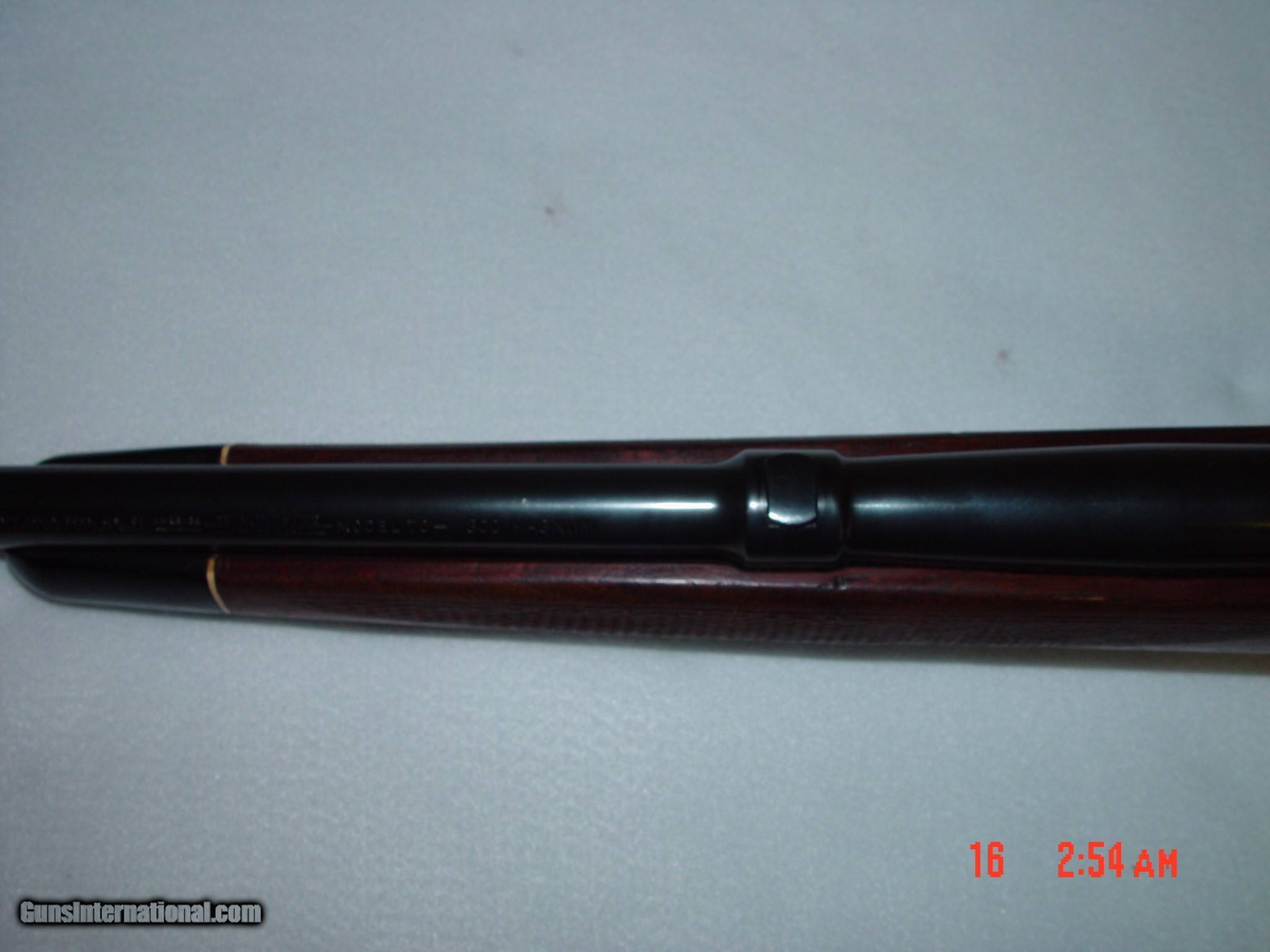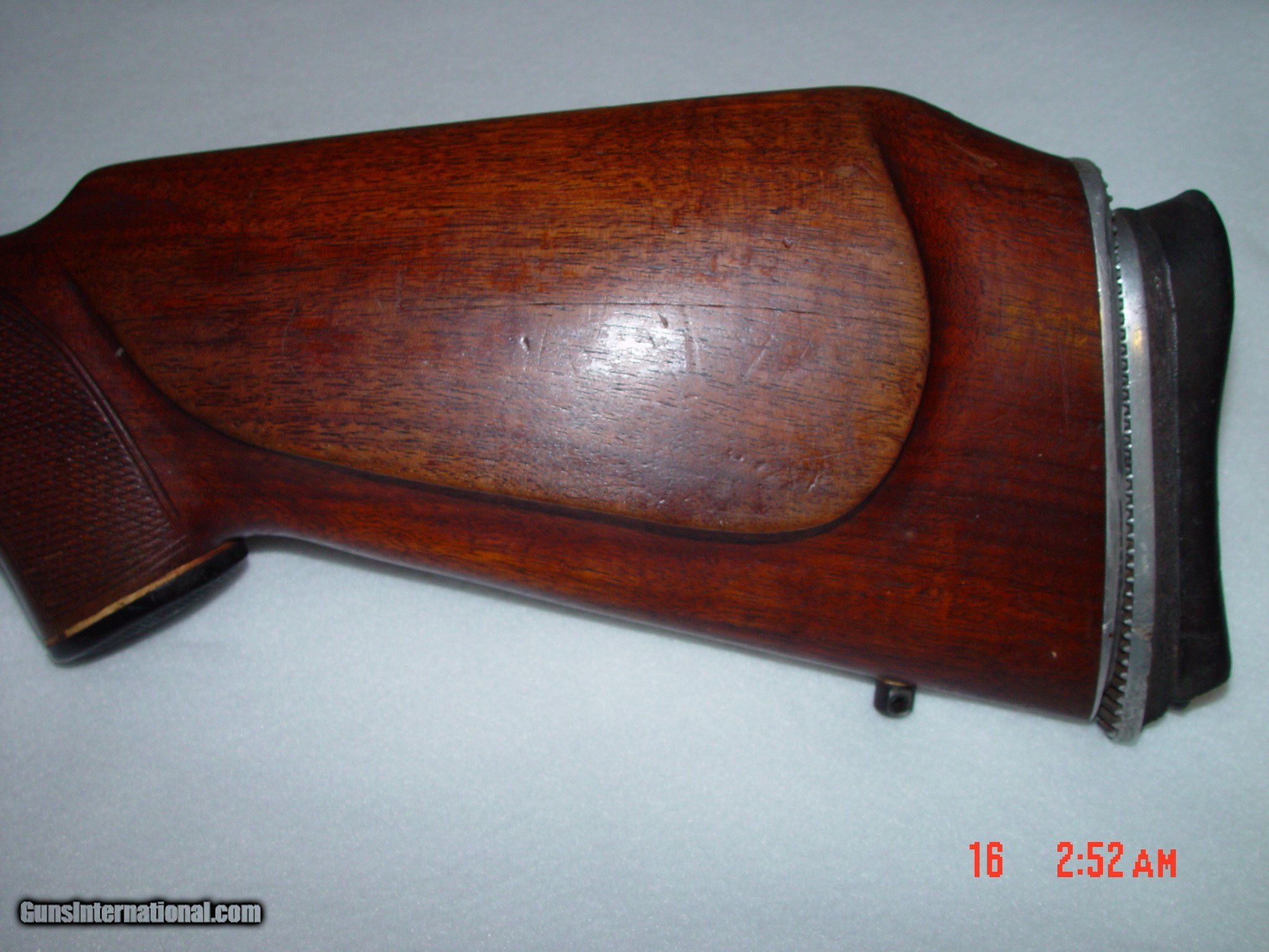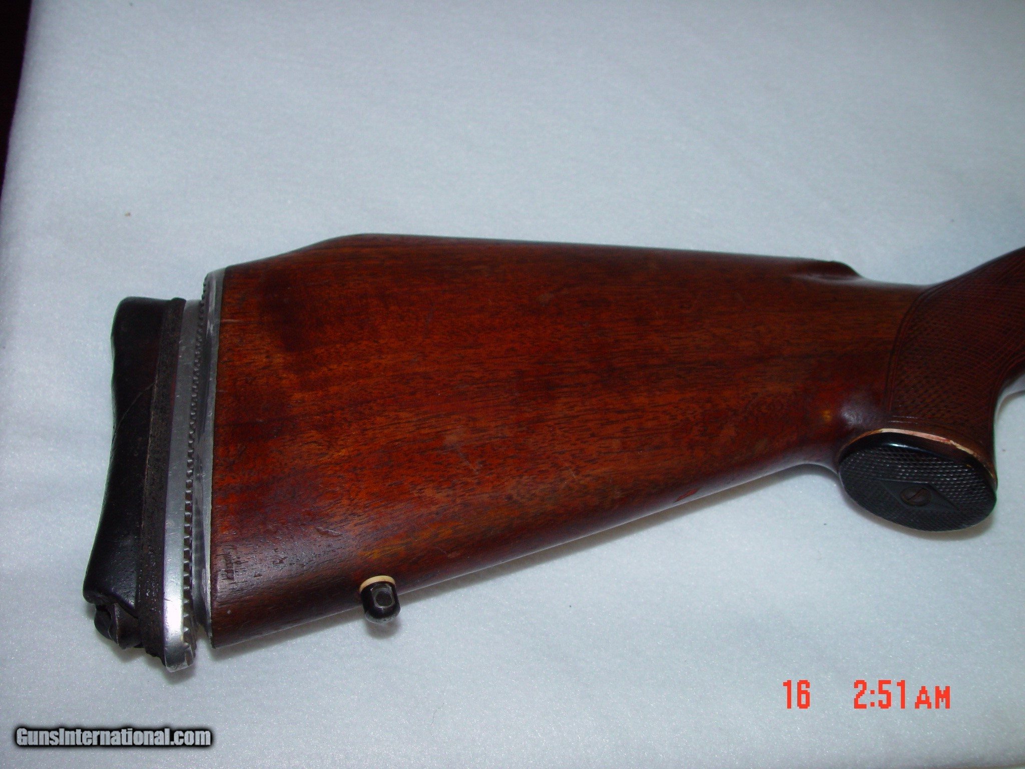 Description: THIS PRE 64 MODEL 70 IN .300 H&H MAGNUM CALIBER MFD IN 1950 IS BASICALLY AN EXCELLENT HUNTER OR A REPRESENTATIVE MODEL FOR SOMEONE WANTING A VINTAGE MODEL 70 RIFLE. A PREVIOUS OWNER APPARENTLY PUT A MODIFIED POST 64 WINCHESTER STOCK WITH MORGAN RECOIL PAD ON THE GUN TO REPLACE A MISSING OR BROKEN STOCK. THE ACTION HAS BEEN SIDE TAPPED TO MOUNT A SIGHT THERE AND BOTH FRONT AND REAR SIGHTS HAVE BEEN REMOVED IN ORDER TO ACCOMODATE A SCOPE IN WEAVER RINGS AND BASES. THE RIFLE BORE IS GOOD AND THE ACTION IS TIGHT BUT ALL THE METAL APPEARS TO HAVE BEEN REBLUED. SOLD Curio/Relic: Yes |