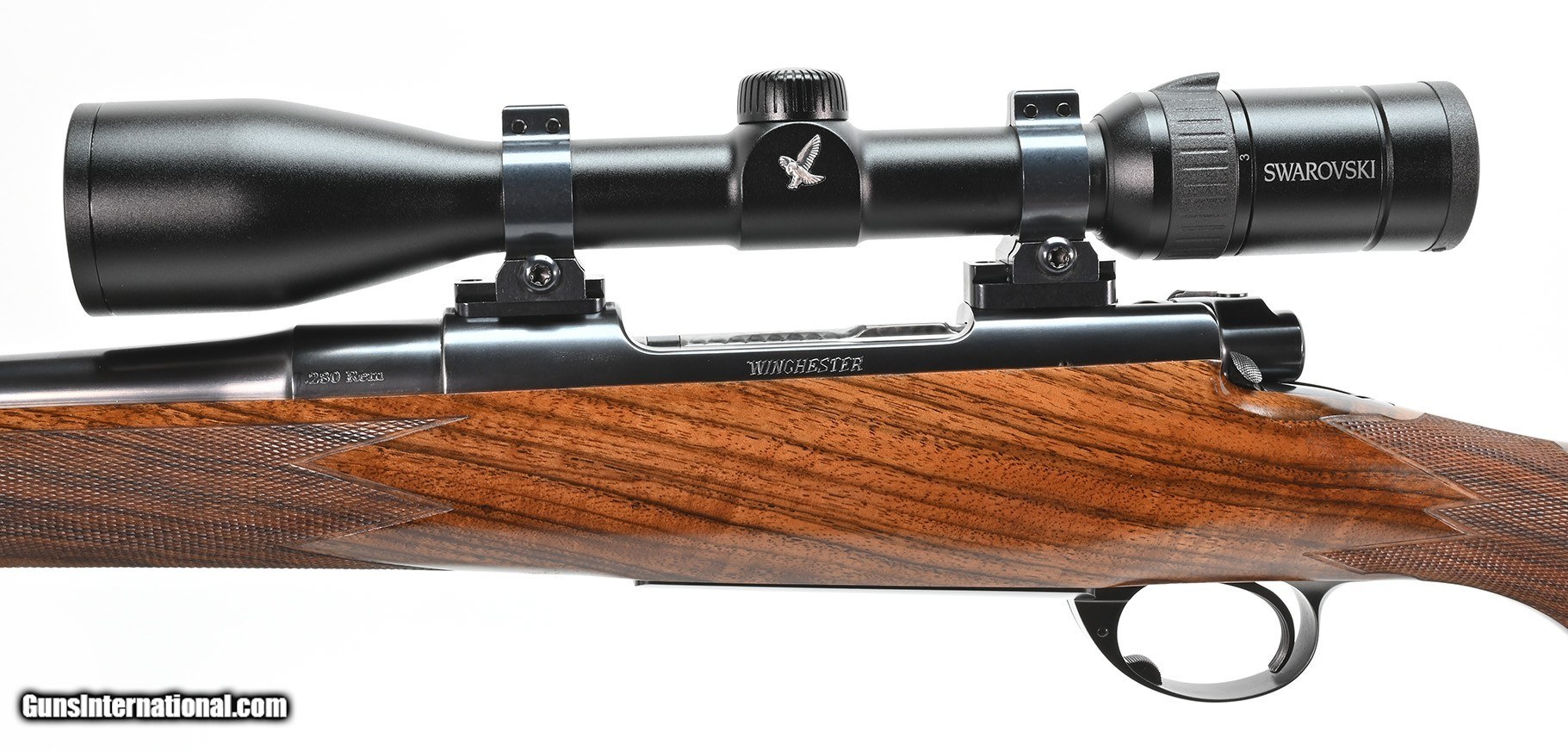 Description: Winchester Pre-64 Model 70 Custom .280 Rem. Super Clean Rifle In Hard Case. Receiver DOM 1948 AVAILABLE FOR PURCHASE AT OUR ON-LINE STORE "The Winchester Model 70 is a bolt-action sporting rifle. It has an iconic place in American sporting culture and has been held in high regard by shooters since it was introduced in 1936, earning the moniker "The Rifleman's Rifle".[1] The action has some design similarities to Mauser designs and it is a development of the earlier Winchester Model 54, itself based on a Mauser 98-type action." Custom Rifle Assembled In 2010. Appears Unfired. With Swarovski Z3 3-10x42 Scope This Winchester Pre-64 Model 70 Has Some Unique Features: