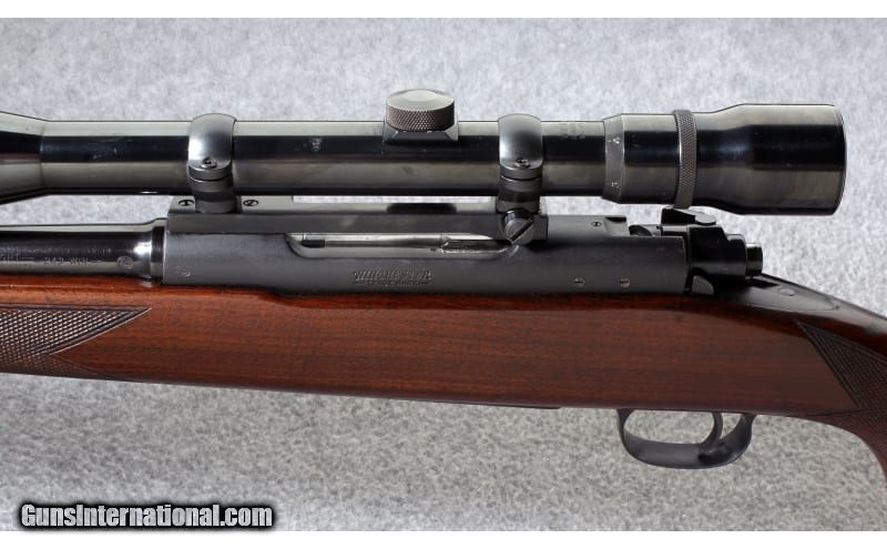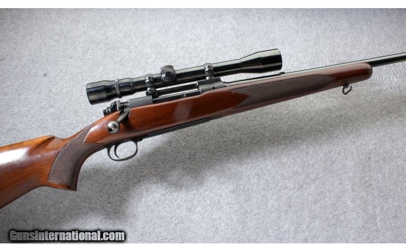 Description: This pre 1964 Winchester Model 70 Featherweight .243 Win. features a control round feed action, large Mauser style claw extractor for positive feeding and extraction, checkered walnut Monte Carlo stock, hinged floor plate magazine for safe unloading and a three position safety. This rifle shows its age well. Manufactured 1956. .243 Winchester SOLD Curio/Relic: Yes Metal Condition: Very good with some finish wear on the bolt handle and sharp edges Wood Condition: Very good with some scratches and dents Bore Condition: "Very good, bright and sharp Barrels: 22 inch barrel Stock Dimensions: 13 3/8 inch LOP Fore End: Checkered walnut Butt Pad: Pachmayr recoil pad Weight: 8 Lbs. 4 Oz. Sights: "Weaver Marksman 3-9x scope, hooded front sight, rear sight was removed. Item Location: Lehi, UT |