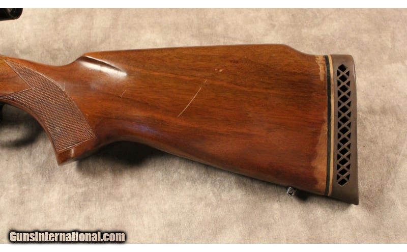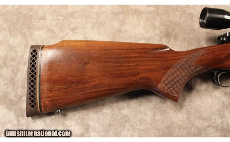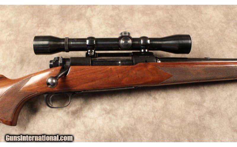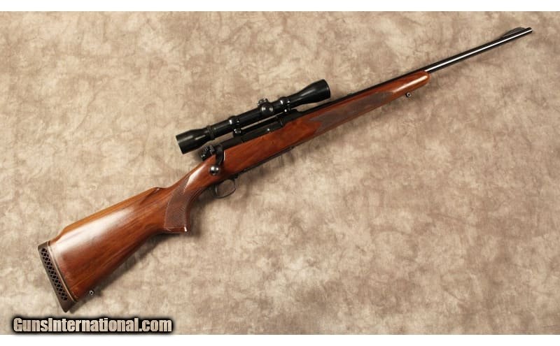 Description: Winchester model 70 pre-64 featherweight rifle in 243 Winchester with a Weaver K4 scope (rear sight removed) made in 1956. Original butt plate as been replaced with a recoil pad otherwise this would be a very nice original specimen. .243 Winchester SOLD Chambers: 4 Metal Condition: Very good Wood Condition: Very good some finish loss wear recoil pad was added. Bore Condition: Very good Barrels: 22 Butt Pad: Not original Weight: 7lbs Sights: Weaver K4 Scope Item Location: Mesa, AZ |