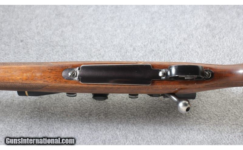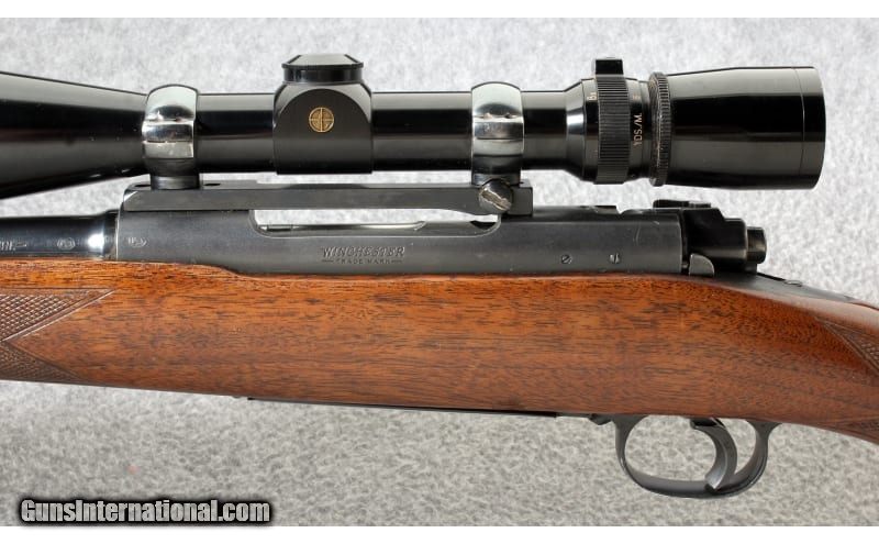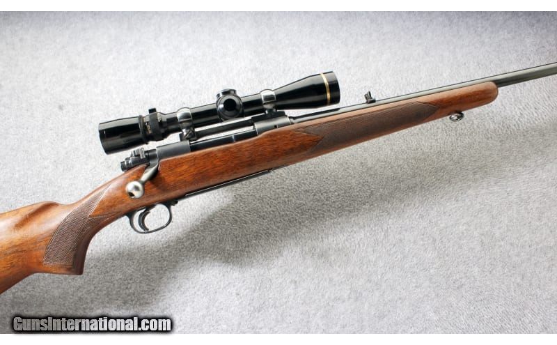 Description: This pre 1964 Winchester Model 70 Featherweight .270 Win. features a control round feed action, large Mauser style claw extractor for positive feeding and extraction, checkered walnut Monte Carlo stock, hinged floor plate magazine for safe unloading and a three position safety. This rifle shows its age well. Manufactured 1960. .270 Winchester SOLD Metal Condition: "Good, with finish wear on the bolt handle and sharp edges Wood Condition: "Good, with some scratches and dents Bore Condition: "Very good, bright and sharp Barrels: 22 inch barrel Stock Dimensions: 13 5/8 inch LOP Fore End: Checkered walnut Butt Pad: Pachmayr recoil pad Weight: 7 Lbs. 14 Oz. Sights: "Leupold Vari-X III 2.5-8x scope, folding leaf rear sight and bead front sight is missing the hood Item Location: Lehi, UT |