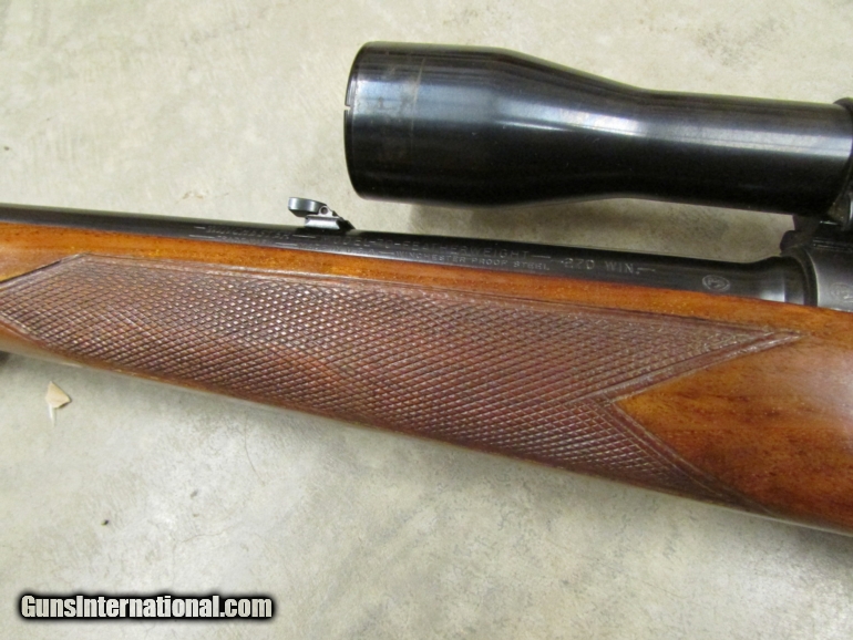 Description: Used in Great Condition, Ready to Ship! Buy It Now!! The legendary handling and quickness of the Model 70 Featherweight is justly famous among hunters everywhere. This Model 70 action offers the Pre-’64 style Controlled Round Feeding, and a Three-Position Safety. This original Featherweight features the angled comb Grade I walnut stock with Schnabel fore-end and satin finish with elegant cut checkering. This rifle is used, but it remains in very good original condition with most of the original blue. It has seen some hunting use but the bore and all mechanics are still in excellent condition. The original sights are present. Solid stock that features maple inlays. This will make an excellent vintage Winchester to hunt with while it keeps increasing in value. Includes a period Weaver K6 scope. The serial number on the gun dates its year of manufacture as 1961. Pictures are of actual firearm, and the best representation of what you will receive. Action Length: Long Action Caliber: .270 Win Barrel Length: 22" Nominal Overall Length: 42 3/4" Nominal Length of Pull: 13 3/4" Nominal Drop at Comb: 1/2" Nominal Drop at Heel: 3/4" Weight: 7 lbs 0 oz Magazine Capacity: 5 Rate of Twist: 1 in 10" Barrel Finish: Brushed Polish Stock Finish: Gloss Receiver Finish: Brushed Polish Chamber Finish: Polished Barrel Material: Steel Barrel Contour: Featherweight Receiver Material: Steel Magazine Type: Hinged Floorplate Trigger Material: Stainless Steel Floor Plate Material: Steel Shipping to Lower 48 Only, Shipping $30.00, We Do Not Charge Credit Card Fees!! KNOW YOUR LOCAL AND STATE LAWS!! SOLD |