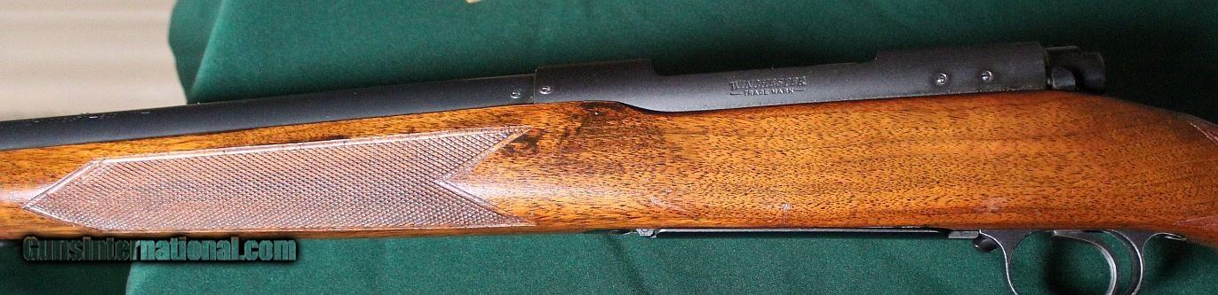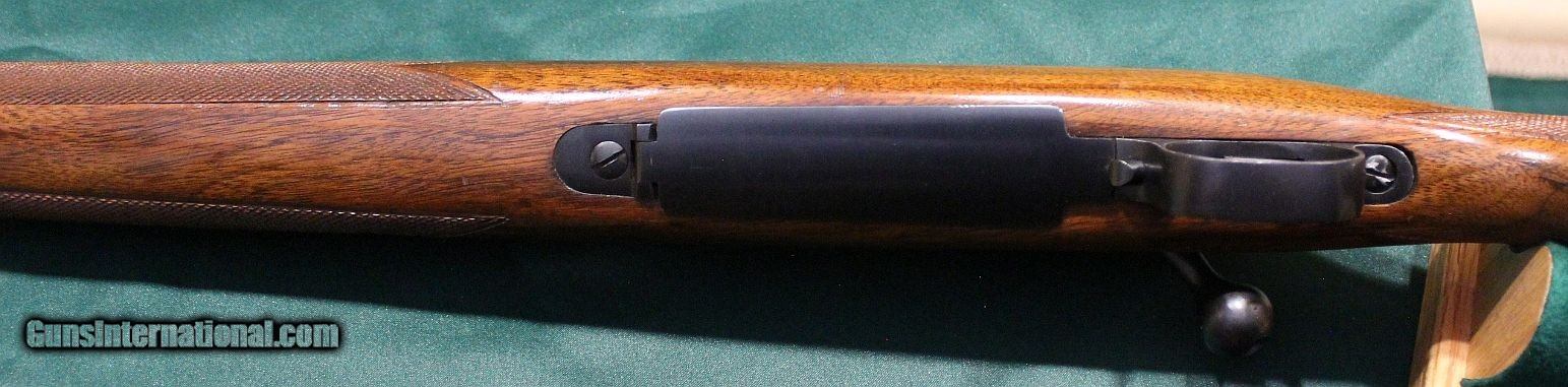 Description: An exceptional example of this unique rifle. This rifle is in the early production range. It has the larger checkering pattern. Condition is Excellent plus. The bluing remains at 99% plus. Wood has all the factory finish.which has a few handling marks; likely from from gun cabinet storage. Rifle is better than the pictures present it. It does not appear to have ever been in the field. A very nice 243 HB Varmint. Price: $2395.00 plus $55.00 ground shipping to lower 48. AK & HI shipping: 2nd day air $185.00. SOLD Curio/Relic: Yes Rifle Caliber: .243 Winchester |