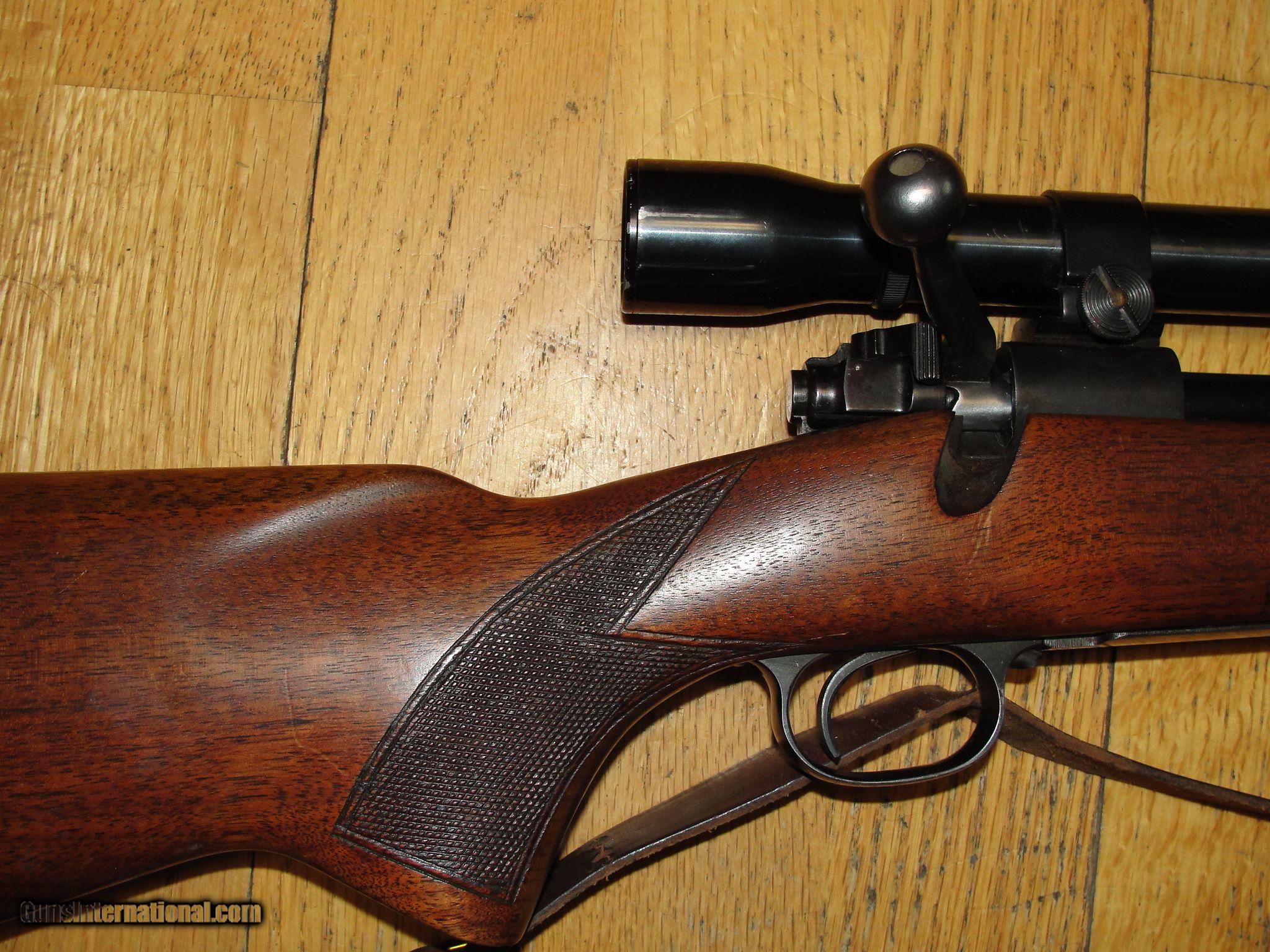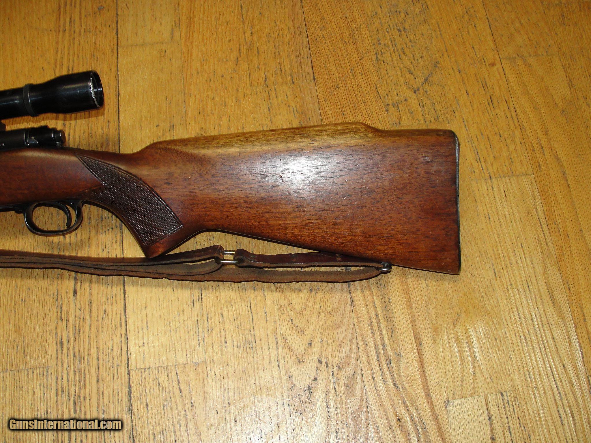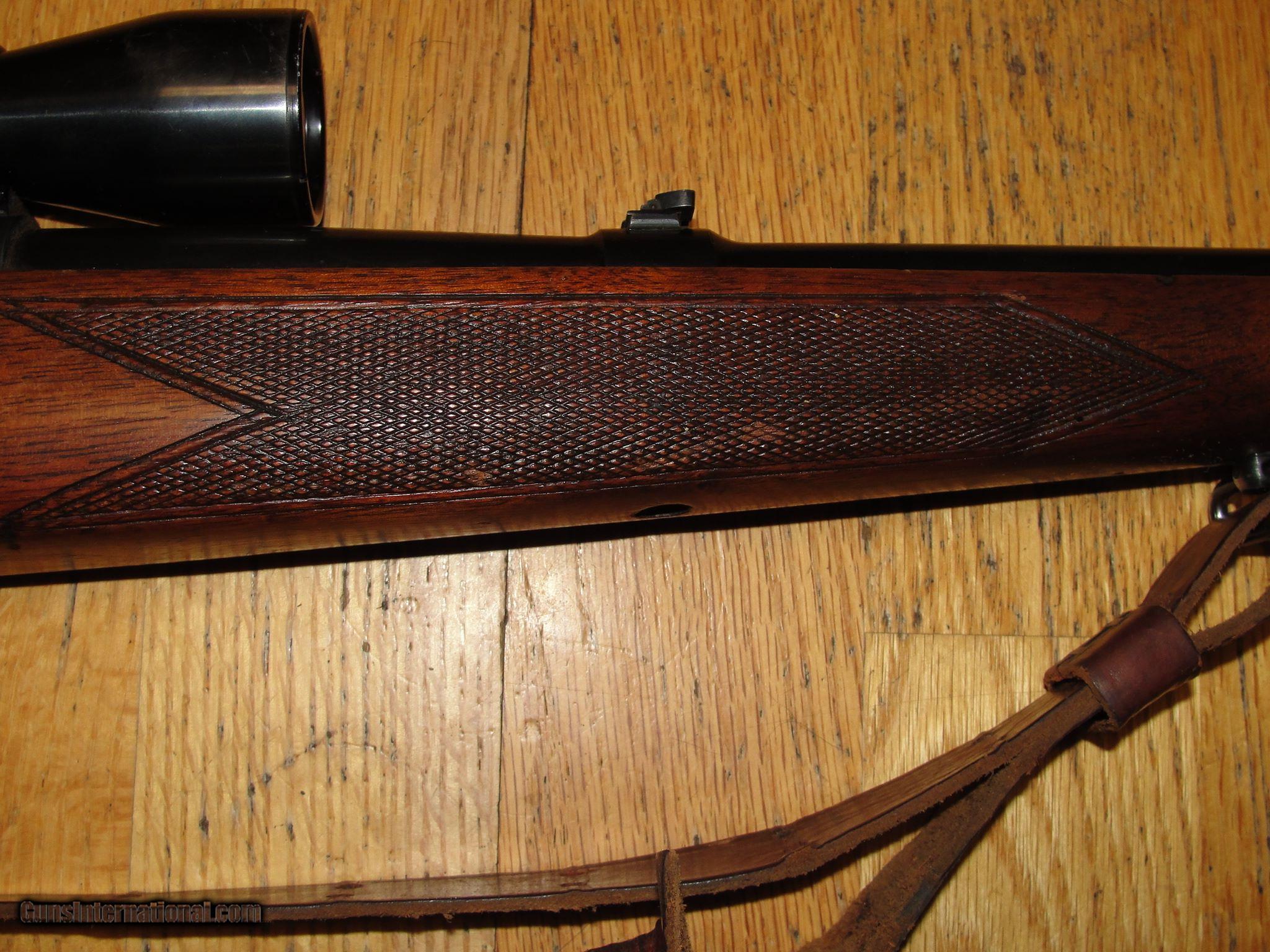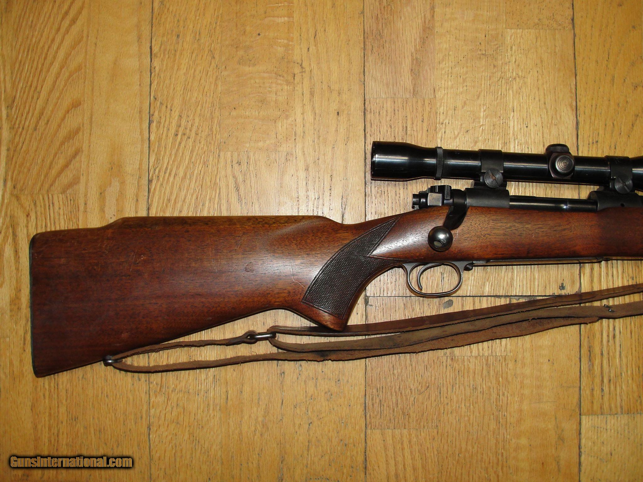 Description: Winchester model 70 pre 64 3006, Standard grade rifle with 24" barrel. Gun has good bore, original finish on metal and wood, Wood has some dings, no cracks original but plate and hardware. Has Weaver k-4 scope and mounts. Gun was made in 1953 and features monte carlo stock. Good solid rifle that still has a lot of life in it. I am pretty sure that the combo was probably put together at original time of purchase. SOLD |