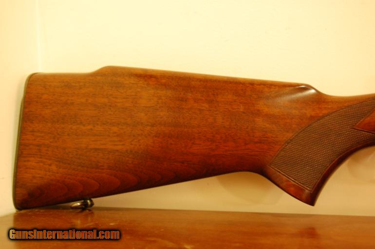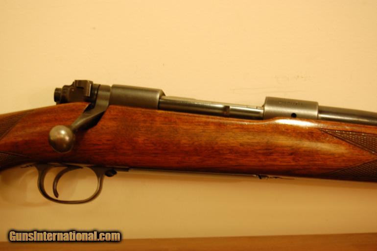 Description: WINCHESTER PRE 64 MODEL 70 sn 264xxx .30-06 with a bright excellent bore. Standard configuration high-comb stocked model 70 retains 97% original barrel blue with slightly less remaining on the action at 96%. The floor plate and trigger guard are nearly excellent with 95%+ original blue with minor edge wear at the carry point. The stock retains 96% varnish exhibiting a very few minor dings over the strong finish. THIS FINE 1953 MODEL 70 IS READY FOR THE WOODS OR YOUR COLLECTION!! SOLD Curio/Relic: Yes |