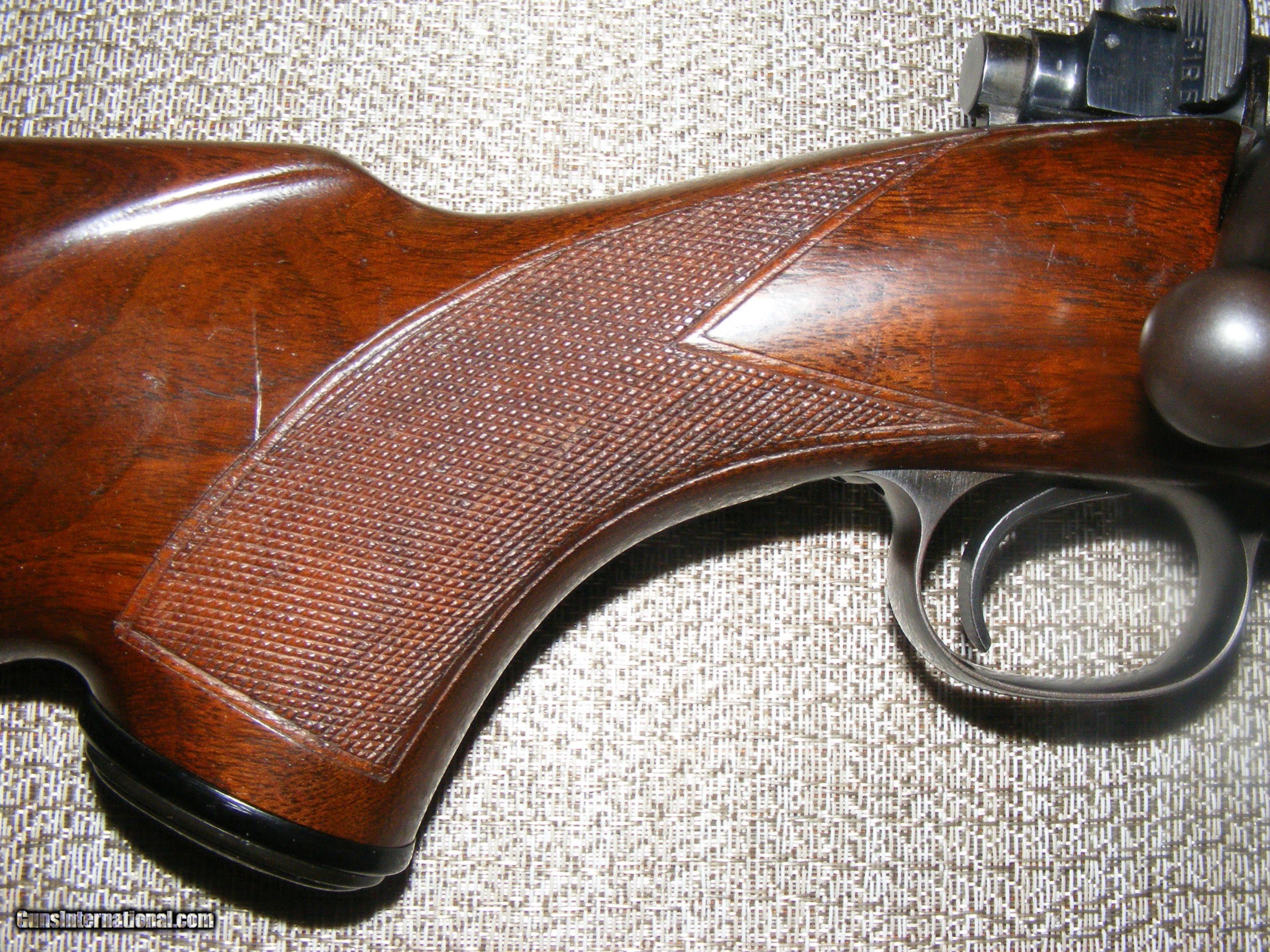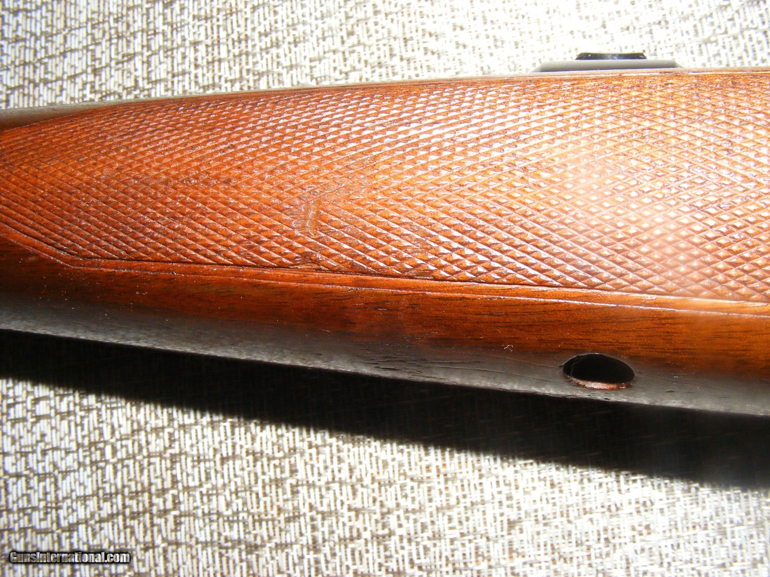Description: Sold Pending For sale is a pre 64 / pre War , Winchester Model 70 original Carbine in 257 Roberts. It has matching numbers that date its manufacturing to 1940. It has a 20" barrel with correct carbine front sight and " 25R " markings under near lug. The rear sight has a blank in it.( Interesting the blank has a big horn sheep engraved on it.) It comes with the bottom half ONLY Lyman receiver sight . It also has a Griffin & Howe side mount and rings. The blue on the barrel and receiver are in very good condition. The blue on the bottom floor plate and trigger guard shows a lot of ware. The wood has some handling marks , dings and scratches but no cracks , chips or defects. The fine checkering is in good condition except for a very small bruise on the left front forearm. Please see image. It is mechanical excellent , the bore is shinny and it has the original steel butt plate. . Buyer pays $65. Shipping and insured to lower 48 in a hard case . Please email me any questions you may have and I would be glad to send more pictures if you like. I prefer money orders as payment , but I will also accept checks. All payments must clear my bank prior to shipment. I must have a signed copy of an FFL dealer to ship to . Please check out my 3 day return policy . SOLD Curio/Relic: Yes |
