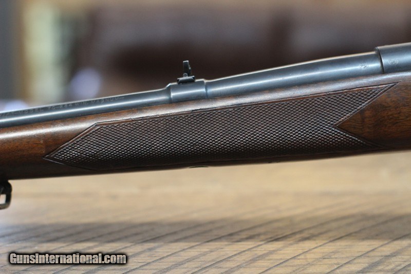 Description: Pre-64 model Serial # 492xxx 26 " stainless steel factory blue 95 % stock original finish (some nicks at toe) Standard M70 sights & hood Factory hard buttplate Excellent bore Shows very little use $2195 SOLD |
