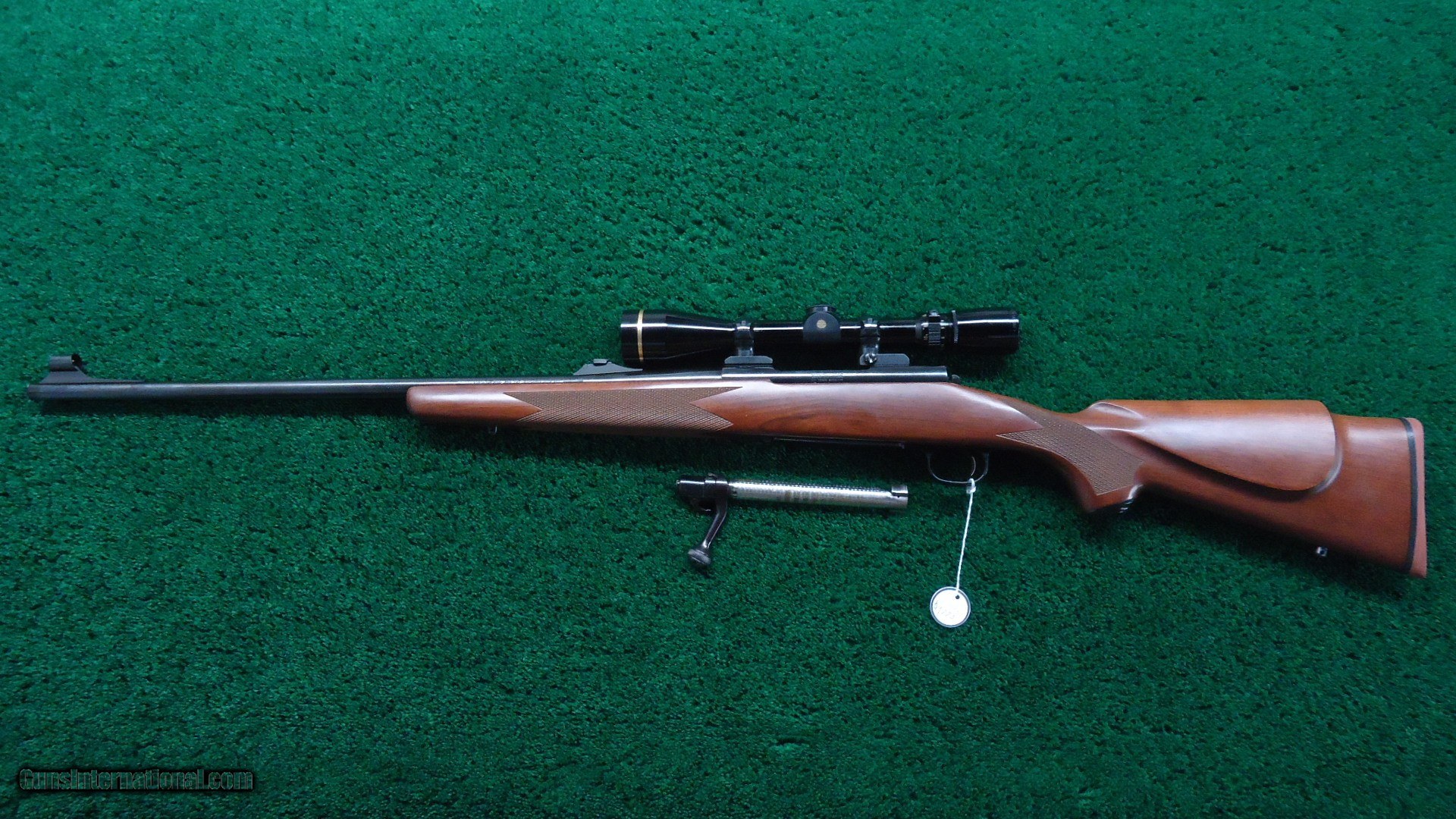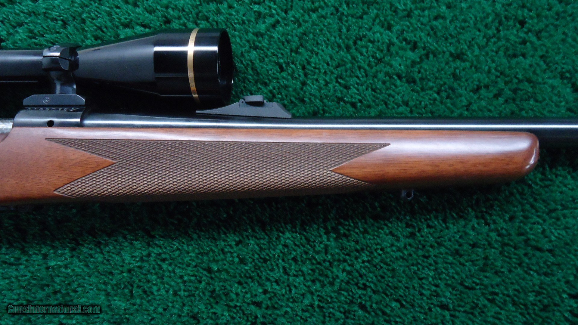 Description: 24 inch round barrel is marked XTR Sporter Magnum. Sights include hooded ramp front sight and fold down rear sight and Leupold Vari-X III 3.5-10x scope in Redfield mounts. Checkered pistol grip walnut stock with black hard rubber grip cap. Red rubber factory recoil pad. Eyes for detachable sling swivels. 98% plus overall condition with a couple very light handling marks. Minty new bore and mechanics with clear high grade optics. This gun is near As New condition and has seen little to no use. Leroy Merz Antique Firearms specializes in antique and vintage Winchesters and other fine American firearms. Since 1965 Mr. Merz has taken part in the world of firearms and has been a contributor to many well known reference books. We have hundreds of additional guns in every price range at our home online. Search for Merz Antiques in google. SOLD Curio/Relic: Yes Rifle Caliber: .338 Winchester Magnum |