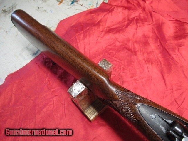 Description: Mfg 1952 Straight Comb, Metal butt, Gold Bead Front Sight, Swivels, Wood shows a few light handling marks, Barrel and receiver blue is very nice, Floorplate shows a little wear, Bolt handle has been shaved for scope clearance, bolt matches, Good bore, Buyer pays 50.00 shipping Pa residents add 65 sales tax, Price is for check or money order, Cc add 3% SOLD Curio/Relic: Yes |