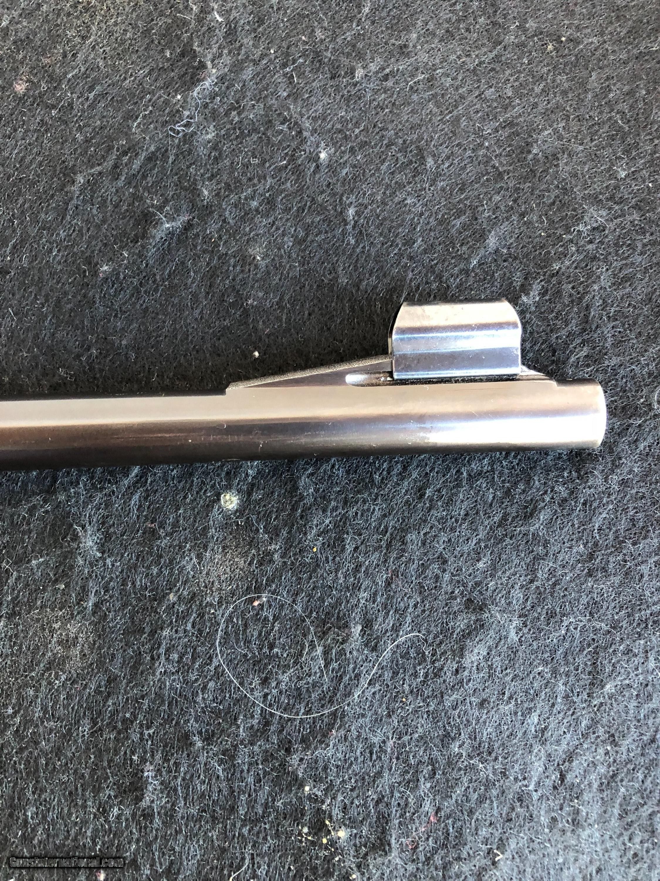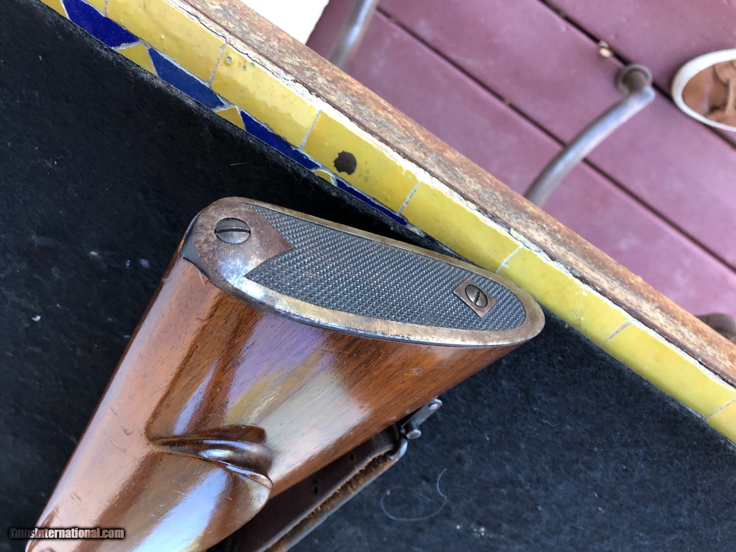 Description: SALE PENDING. This rifle appears to have seen very little, if any, use. It is pristine, except for rubs on the ocular bell of the scope, small handling marks in stock near bolt handle, and the inevitable "belt buckle" rubs on the left side of the stock at the receiver. I've tried to capture all of this gun in photos. The gun dates to 1941. According to Roger Rule's book (p. 248) 1940-41 was the only year that a factory-installed scope was an option. Winchester put Lyman Alaskan 2.5 power scopes in Griffin & Howe sidemounts, and that is precisely what this rifle is fitted with. It also has a Lyman WSJ 48 receiver sight, nicely fitted with the scope mount, so that with the scope removed, the peep bridge slides into the sight base. The sight comes with its original box and installation instructions. Optics and bore are excellent. Supergrade swivels are in place, and I think the sling might even have been on the gun since 1941. Price includes shipping. SOLD Curio/Relic: Yes |