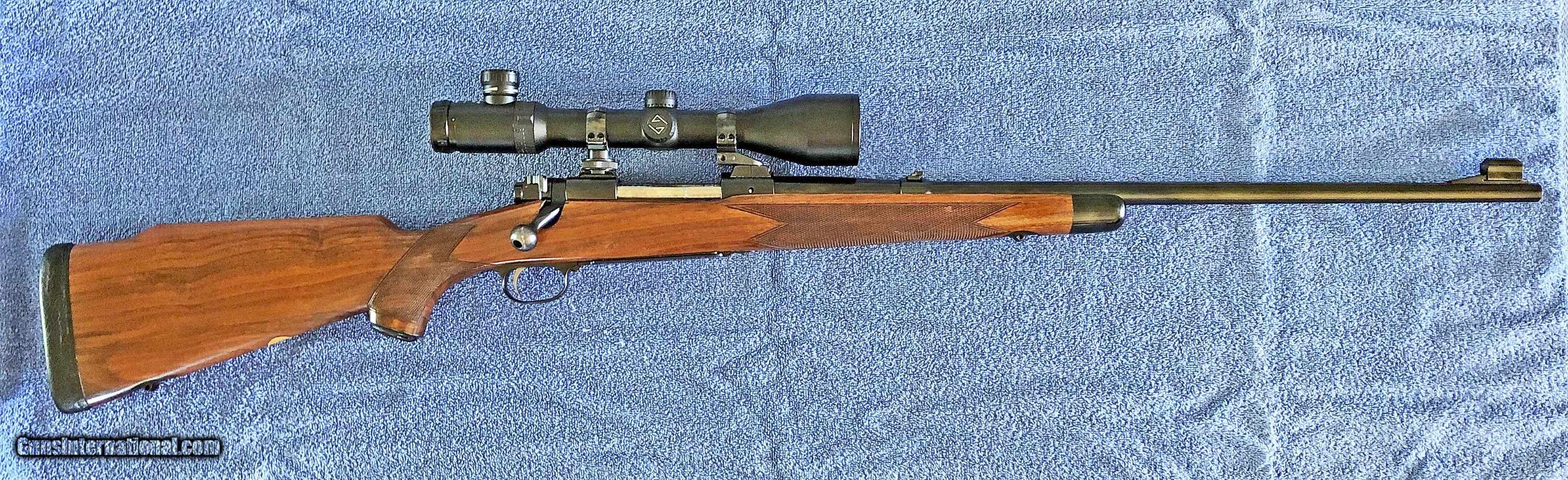 If you are not familiar with the Recknagel detachable scope system, it is one of the best for its quick release and quick return without losing zero. The barrel is still wearing its original Winchester sights so the shooter retains the option of scope or iron sights.