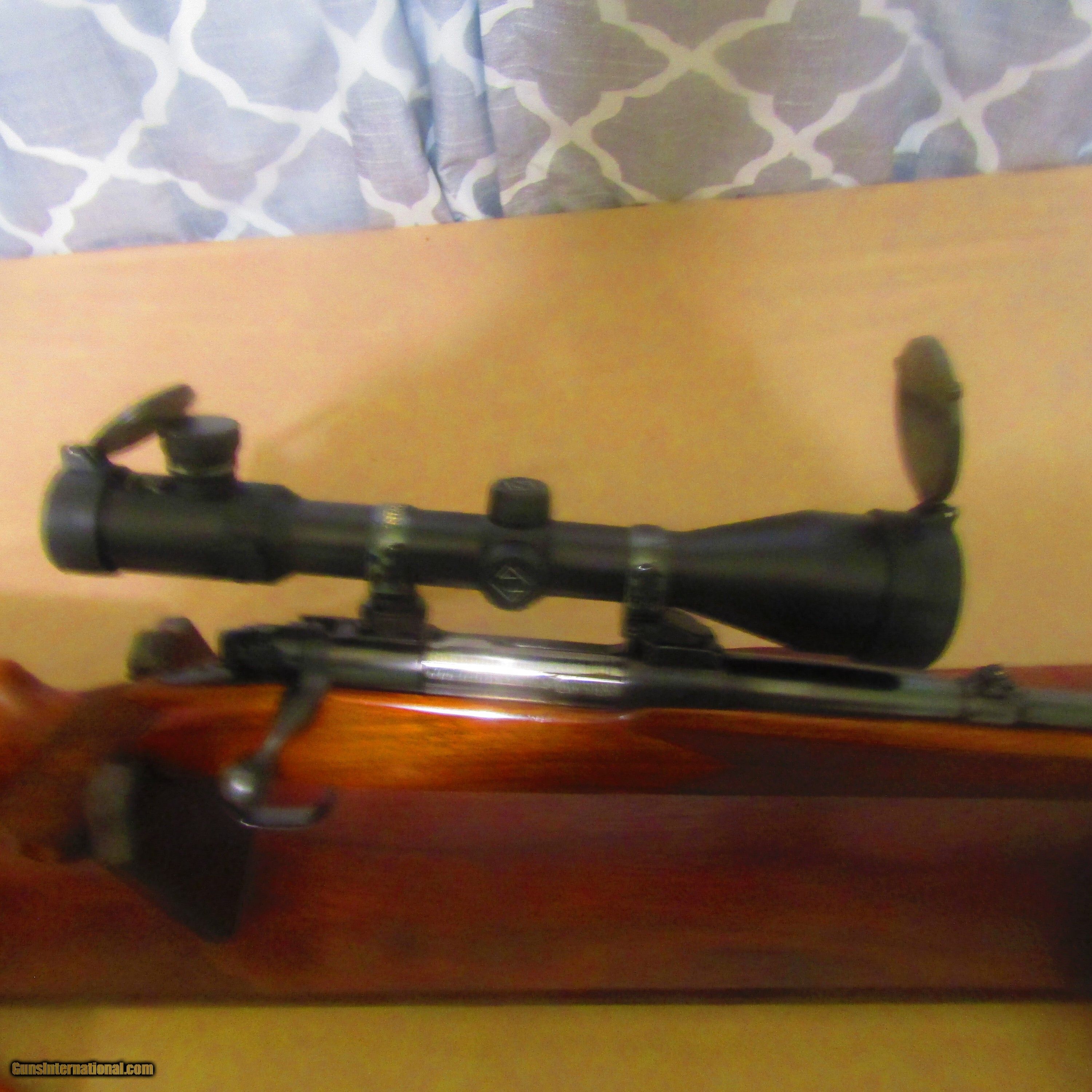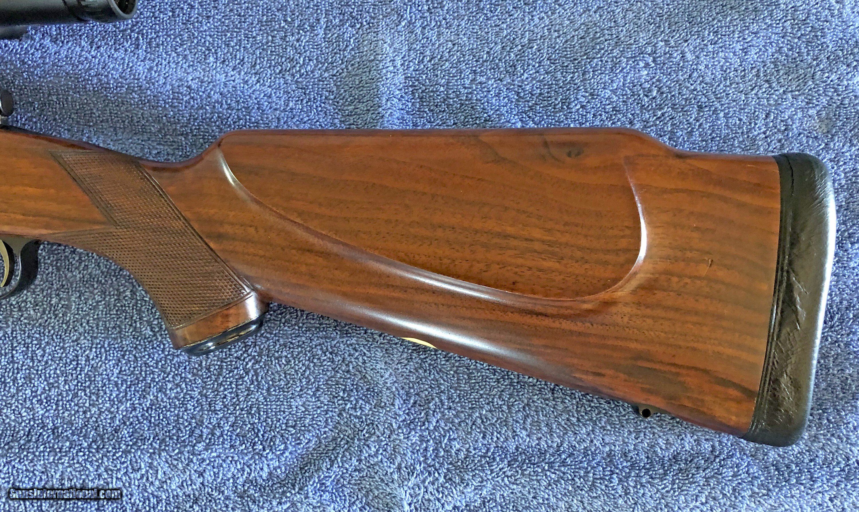 The rifle is fitted with high-end German-made Zeiss Varipoint V 2.5-10x50 scope with Number 60 reticle, a dot with three thin lines, in low -mount Recknagel detachable scope rings, perfectly matched forheight. The scope is a $2800.00 plus with another $450.00 for the Recknagel rings. Also included are Butler Creek flip up scope covers.