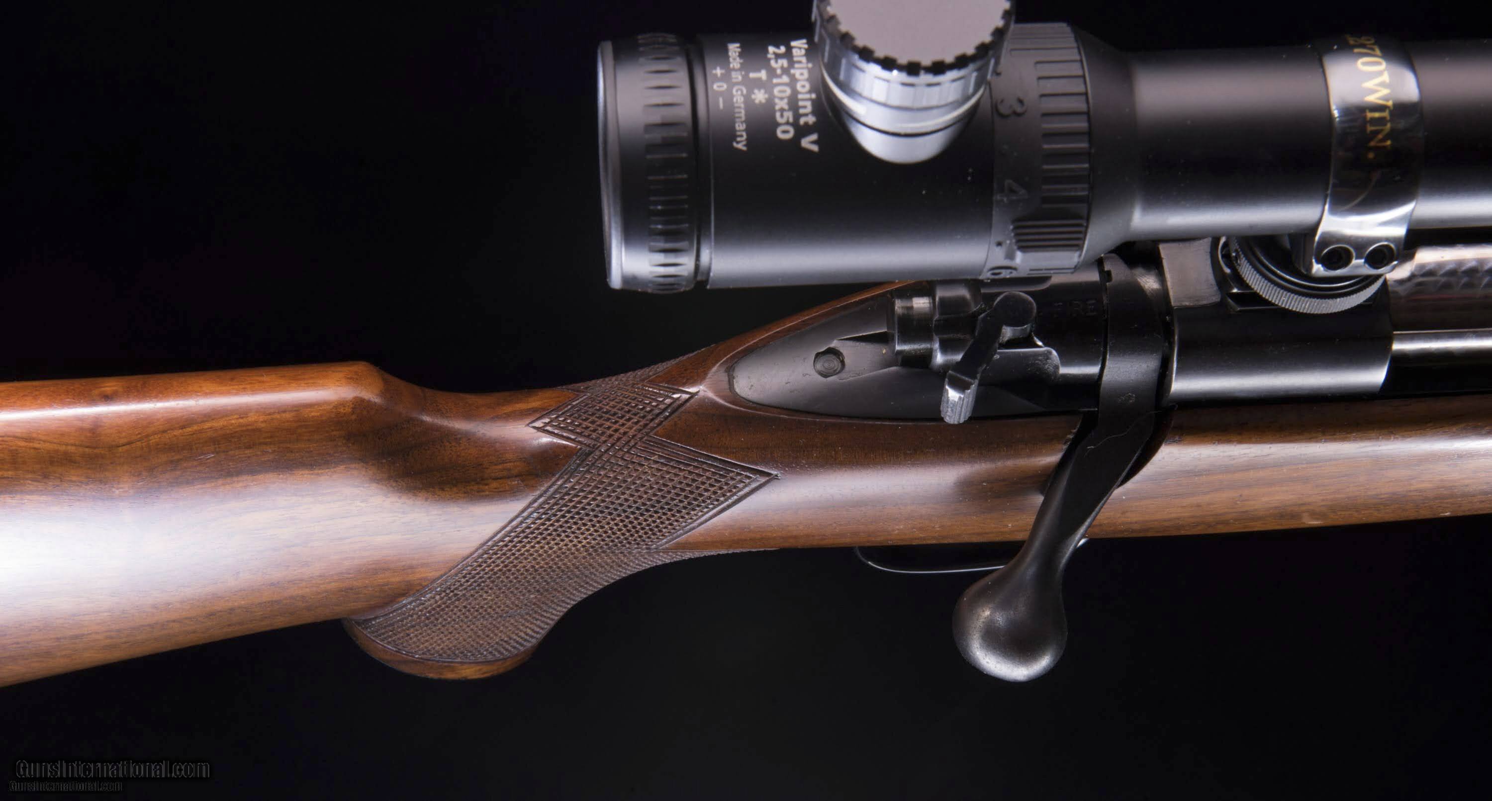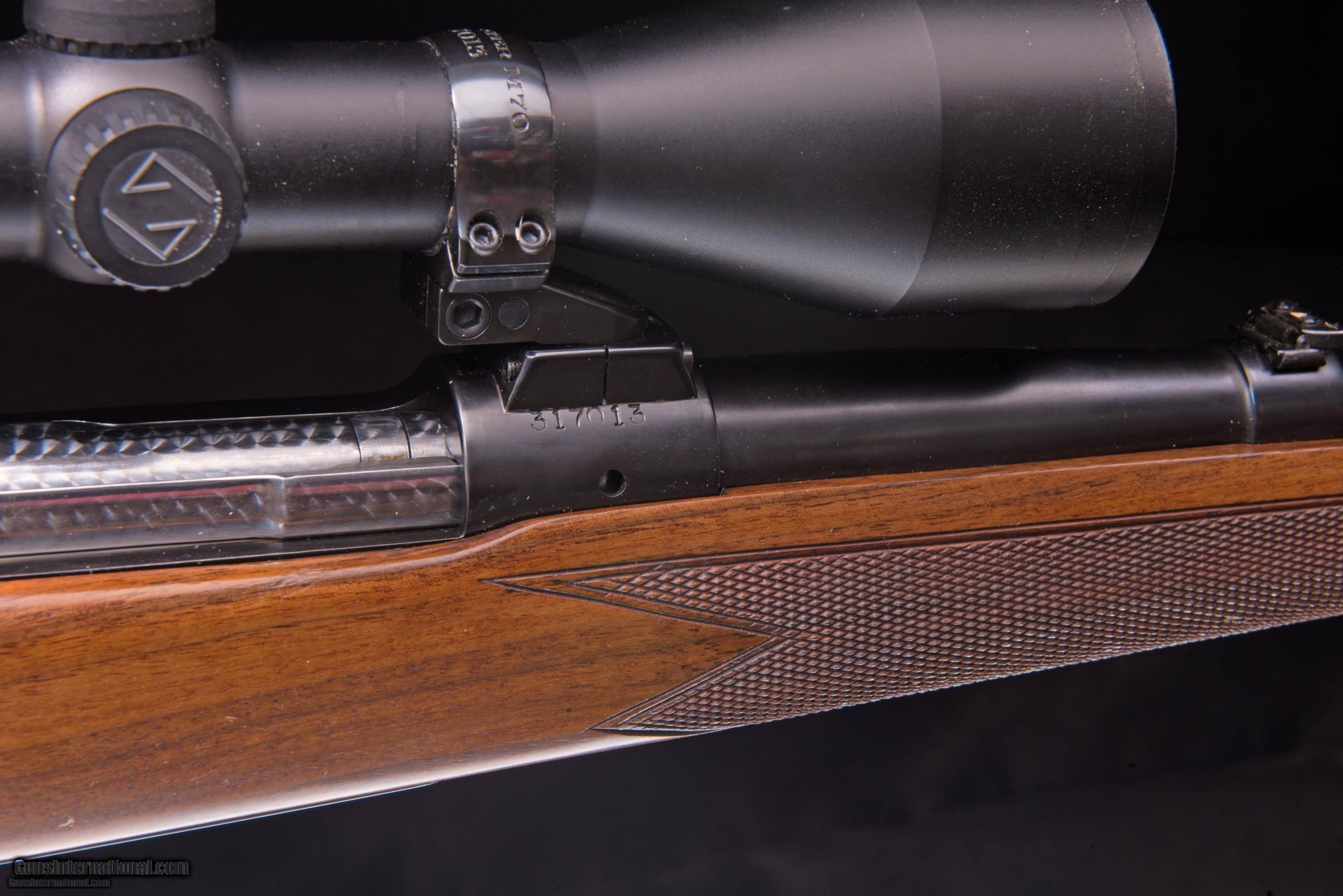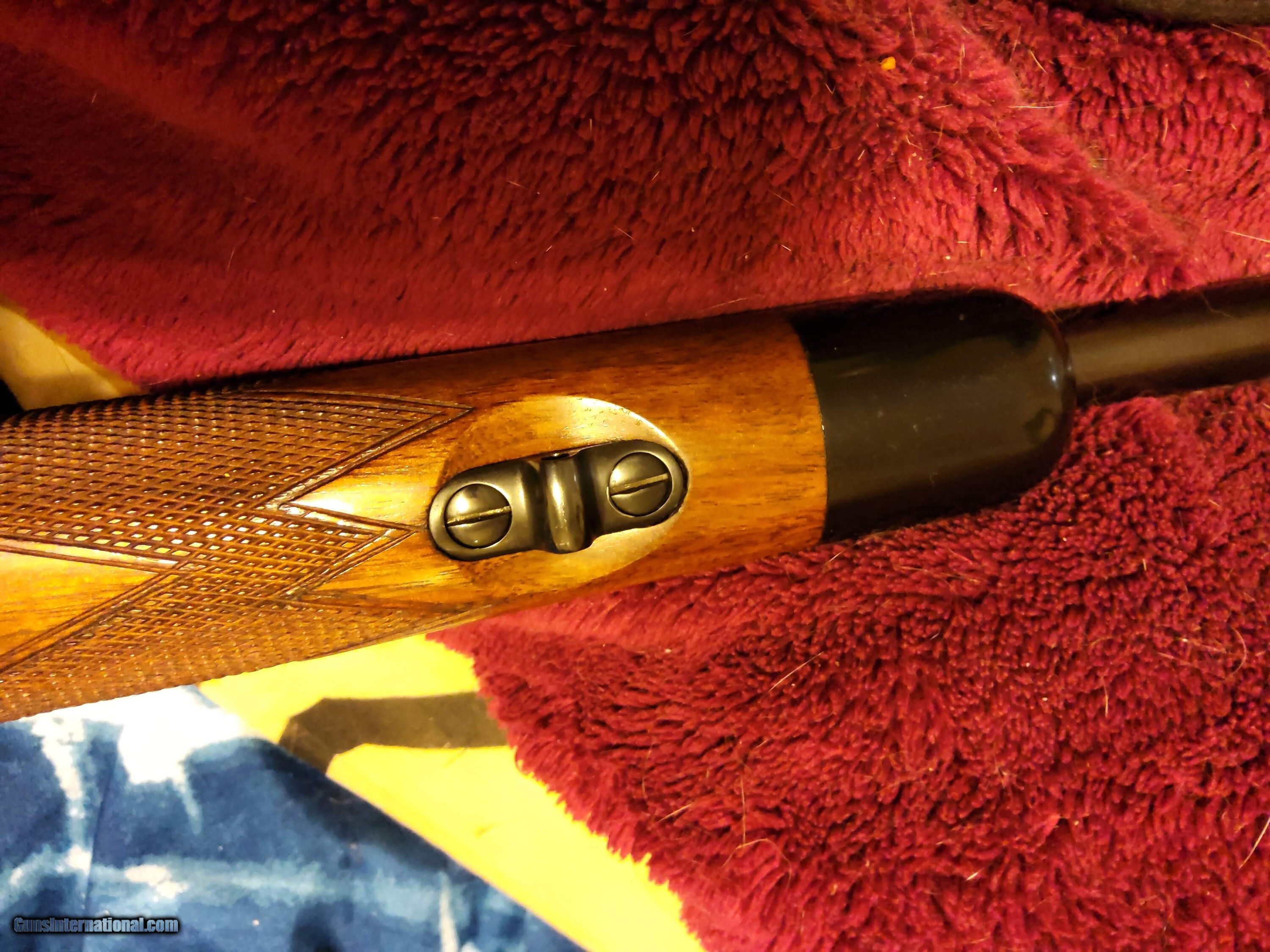 Condition: All metal work is original Winchester, bore is perfect, blue is 99%, wood is 99% and checkering is 100% condition of rifle would be described as Excellent Plus.