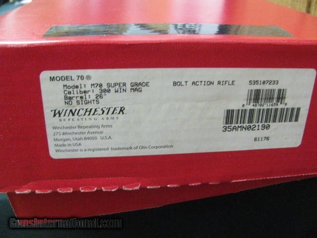 Description: 7186 Winchester 70 SUPERGRADE 300 WIN MAG 26 inch barrel, CLAW EJECTOR, SUPER GRADE ON BOTTOM OF FLOOR PLATE--AAAA++++HIGH FANCEY HEAVILY FIGURED WALNUT,,, BEST I HAVE SEEN. NEW IN BOX, BOLT NEVER PUT IN. NONE FINER SOLD Rifle Caliber: .300 Winchester Magnum |