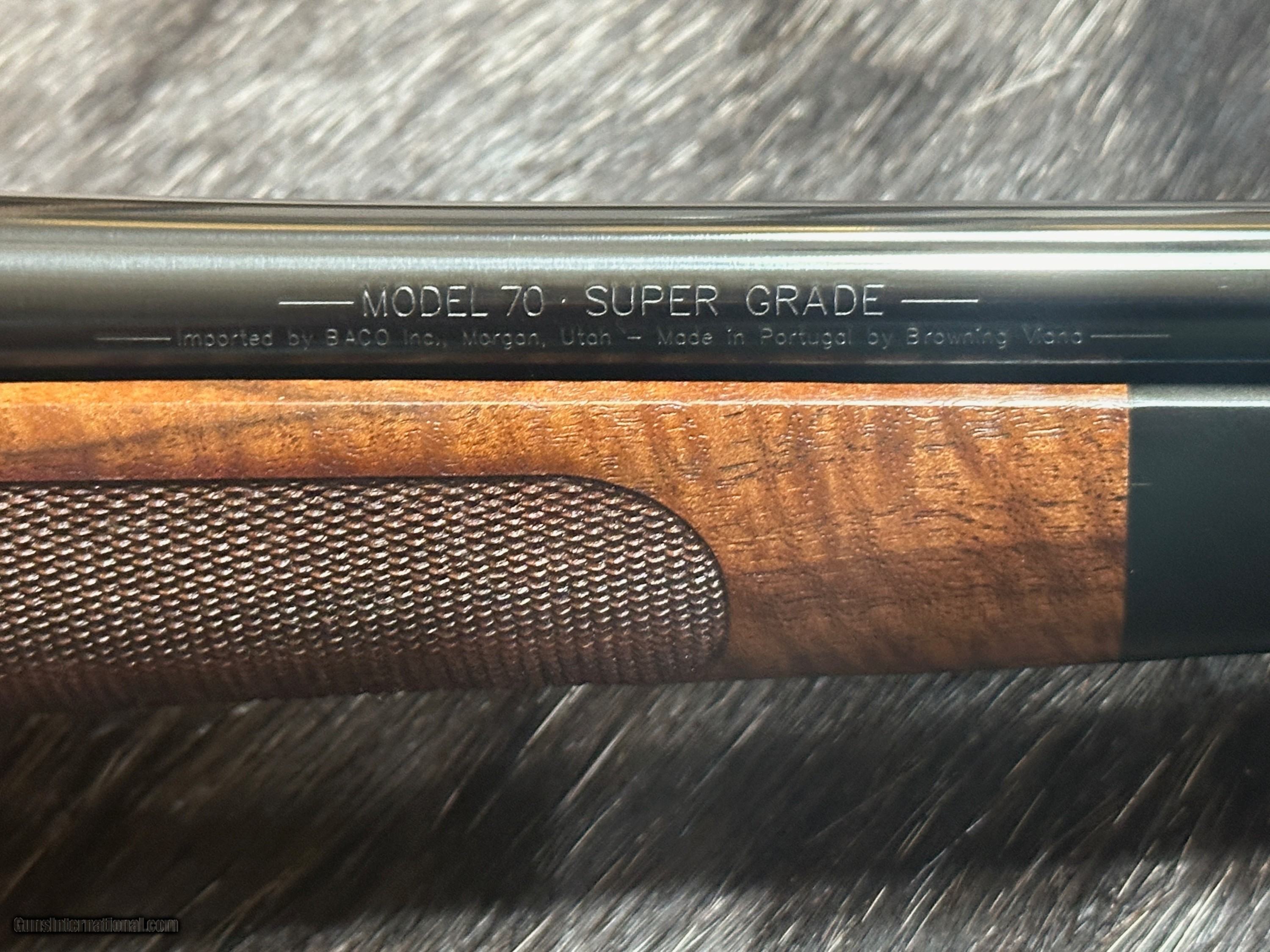 Description: NEW LIMITED EDITION (1 OF 130) WINCHESTER MODEL 70 SUPER GRADE 308 WIN WESTERN BIG GAME, AAA CLARO WALNUT STOCK WITH GREAT FIGURE AND MINERALIZATION IN THE WOOD - LAYAWAY AVAILABLE. UNLIKE OTHER SELLERS, JD OUTFITTERS DOES NOT FALSELY CLAIM TO HAVE “INVENTORY” BUT THEN DROP-SHIPS SOME UNKNOWN AND UNSEEN RIFLE FROM A THIRD-PARTY WAREHOUSE. NOR DOES JD OUTFITTERS USE STOCK OR GENERIC PHOTOS. THE RIFLE YOU SEE IS IN INVENTORY, READY TO SHIP, AND IS THE RIFLE YOU WILL RECEIVE! FREE AFRICAN SAFARI WITH KUCHE SAFARIS (: KUCHE.CO.ZA) INCLUDED WITH THIS RIFLE! SAFARI IS FOR 1-HUNTER / 5-DAYS / 3-ANIMALS (IMPALA, BLESBUCK, WARTHOG). SAFARI IS CUSTOMIZABLE WITH AS MANY ADDITIONAL DAYS AND ANIMALS AS YOU WANT. THE CERTIFICATE IS GOOD FOR 3-YEARS FROM DATE OF PURCHASE AND WILL BE EMAILED TO YOU. NOTE: THE SAFARI IS FREE AND DOES NOT ADD ANY COST TO THE FIREARM. BUY A SCOPE AND RINGS/BASES FROM JD OUTFITTERS AND RECEIVE FREE MOUNTING. JD OUTFITTERS STOCKS LEUPOLD, SWAROVSKI, KAHLES, AND MANY OTHER SCOPES. Features Of This BEAUTIFUL Model 70 LIMITED EDITION SUPER GRADE Rifle Include: