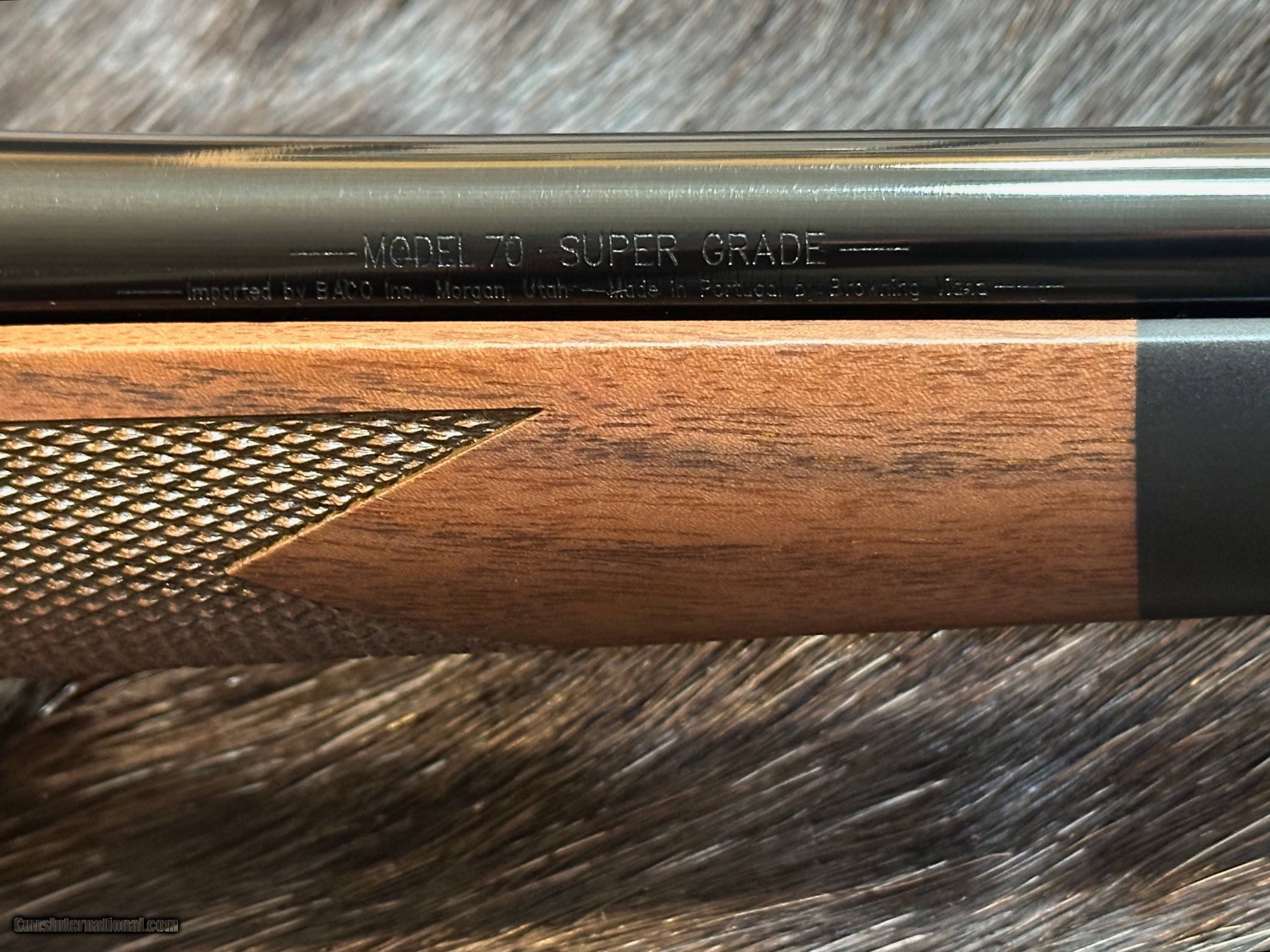 Description: NEW WINCHESTER MODEL 70 SUPER GRADE 243 WINCHESTER RIFLE WITH GREAT WOOD - LAYAWAY AVAILABLE. UNLIKE OTHER SELLERS, JD OUTFITTERS DOES NOT USE STOCK OR GENERIC PHOTOS OR DROP-SHIP FROM A THIRD-PARTY. THE RIFLE YOU SEE IS IN INVENTORY, READY TO SHIP, AND IS THE RIFLE YOU WILL RECEIVE! FREE AFRICAN SAFARI WITH KUCHE SAFARIS (: KUCHE.CO.ZA) INCLUDED WITH THIS RIFLE! SAFARI IS FOR 1-HUNTER / 5-DAYS / 3-ANIMALS (IMPALA, BLESBUCK, WARTHOG). SAFARI IS CUSTOMIZABLE WITH ADDITIONAL DAYS AND ANIMALS AVAILABLE. THE CERTIFICATE IS GOOD FOR 3-YEARS FROM DATE OF PURCHASE AND WILL BE EMAILED TO YOU. NOTE: THE SAFARI IS FREE AND DOES NOT ADD ANY COST TO THE RIFLE. BUY A SCOPE AND RINGS/BASES FROM JD OUTFITTERS AND RECEIVE FREE MOUNTING. JD OUTFITTERS STOCKS LEUPOLD, SWAROVSKI, KAHLES, AND MANY OTHER SCOPES. Features Of This BEAUTIFUL Model 70 SUPER GRADE Rifle Include: