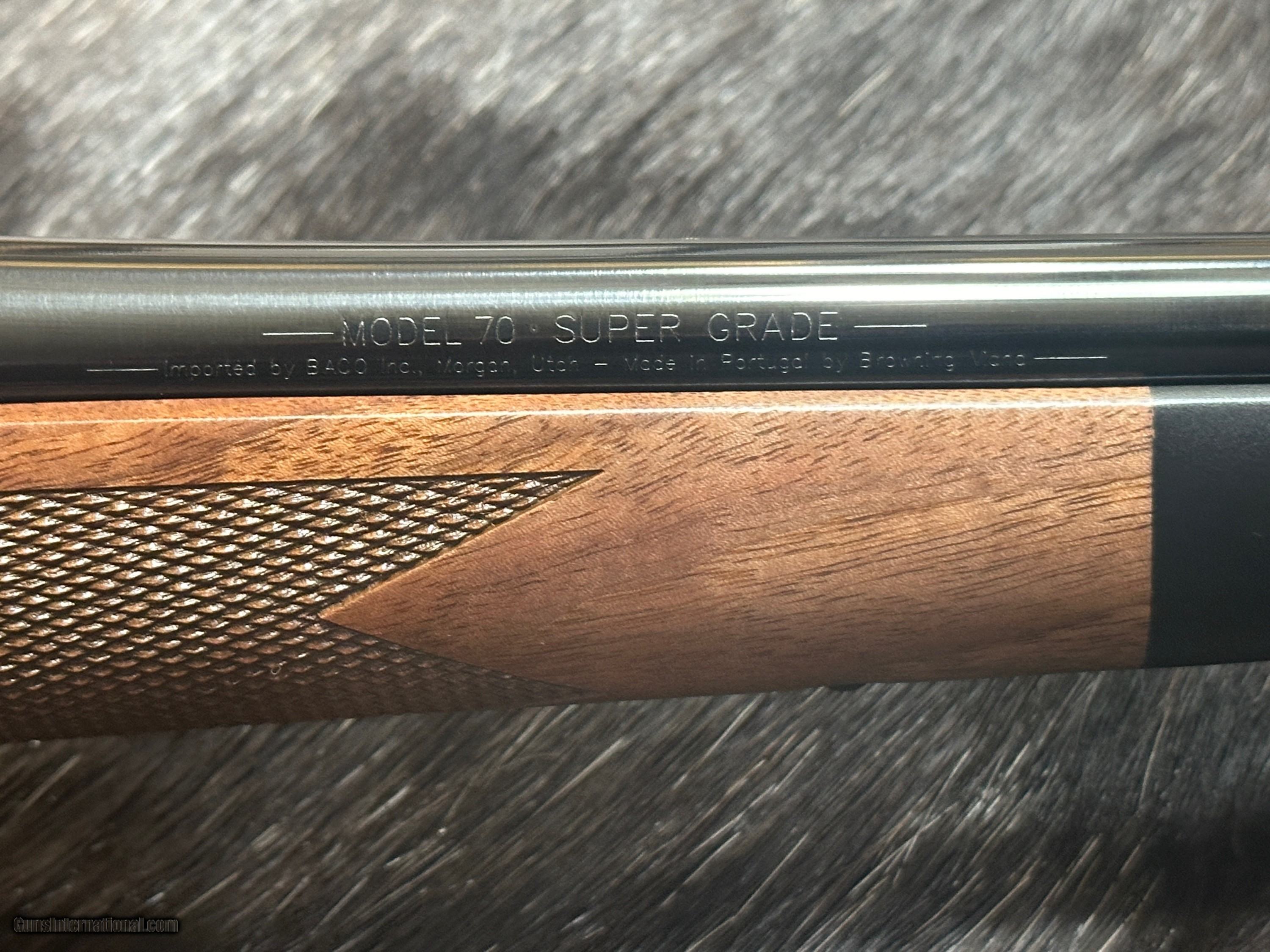 Description: NEW WINCHESTER MODEL 70 SUPER GRADE 338 WINCHESTER MAGNUM RIFLE WITH GREAT WOOD - LAYAWAY AVAILABLE. UNLIKE OTHER SELLERS, JD OUTFITTERS DOES NOT FALSELY CLAIM TO HAVE “INVENTORY” BUT THEN DROP-SHIPS SOME UNKNOWN AND UNSEEN RIFLE FROM A THIRD-PARTY WAREHOUSE. NOR DOES JD OUTFITTERS USE STOCK OR GENERIC PHOTOS. THE RIFLE YOU SEE IS IN INVENTORY, READY TO SHIP, AND IS THE RIFLE YOU WILL RECEIVE! FREE AFRICAN SAFARI WITH KUCHE SAFARIS (: KUCHE.CO.ZA) INCLUDED WITH THIS RIFLE! SAFARI IS FOR 1-HUNTER / 5-DAYS / 3-ANIMALS (IMPALA, BLESBUCK, WARTHOG). SAFARI IS CUSTOMIZABLE WITH ADDITIONAL DAYS AND ANIMALS AVAILABLE. THE CERTIFICATE IS GOOD FOR 3-YEARS FROM DATE OF PURCHASE AND WILL BE EMAILED TO YOU. NOTE: THE SAFARI IS FREE AND DOES NOT ADD ANY COST TO THE RIFLE. BUY A SCOPE AND RINGS/BASES FROM JD OUTFITTERS AND RECEIVE FREE MOUNTING Features Of This BEAUTIFUL Model 70 SUPER GRADE Rifle Include: