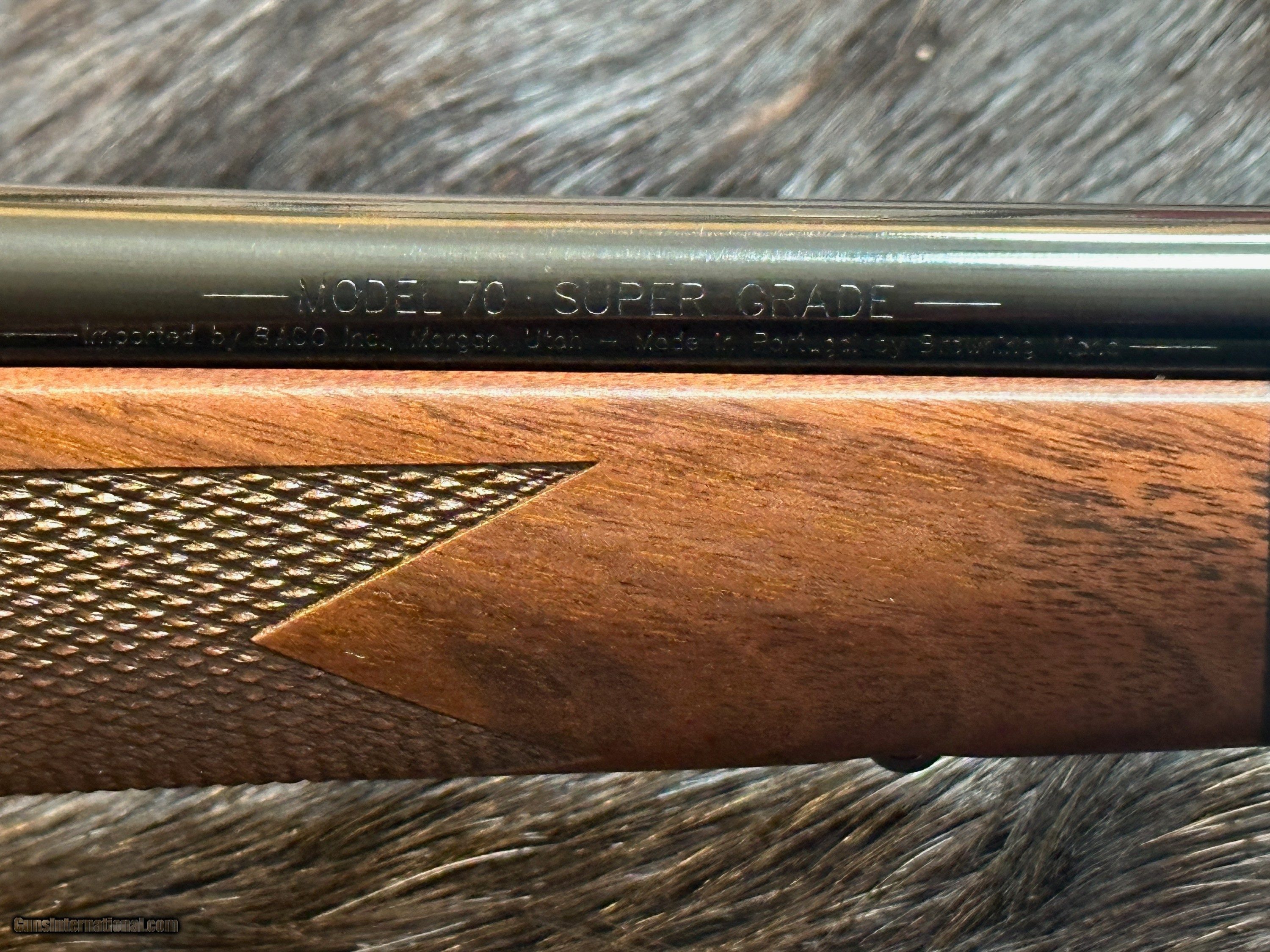 Description: NEW WINCHESTER MODEL 70 SUPER GRADE 7MM REMINGTON MAGNUM RIFLE WITH GREAT WOOD - LAYAWAY AVAILABLE. UNLIKE OTHER SELLERS, JD OUTFITTERS DOES NOT USE STOCK OR GENERIC PHOTOS OR DROP-SHIP FROM A THIRD-PARTY. THE RIFLE YOU SEE IS IN INVENTORY, READY TO SHIP, AND IS THE RIFLE YOU WILL RECEIVE! FREE AFRICAN SAFARI WITH KUCHE SAFARIS (: KUCHE.CO.ZA) INCLUDED WITH THIS RIFLE! SAFARI IS FOR 1-HUNTER / 5-DAYS / 3-ANIMALS (IMPALA, BLESBUCK, WARTHOG). SAFARI IS CUSTOMIZABLE WITH ADDITIONAL DAYS AND ANIMALS AVAILABLE. THE CERTIFICATE IS GOOD FOR 3-YEARS FROM DATE OF PURCHASE AND WILL BE EMAILED TO YOU. NOTE: THE SAFARI IS FREE AND DOES NOT ADD ANY COST TO THE RIFLE. BUY A SCOPE AND RINGS/BASES FROM JD OUTFITTERS AND RECEIVE FREE MOUNTING. JD OUTFITTERS STOCKS LEUPOLD, SWAROVSKI, KAHLES, AND MANY OTHER SCOPES. Features Of This BEAUTIFUL Model 70 SUPER GRADE Rifle Include: