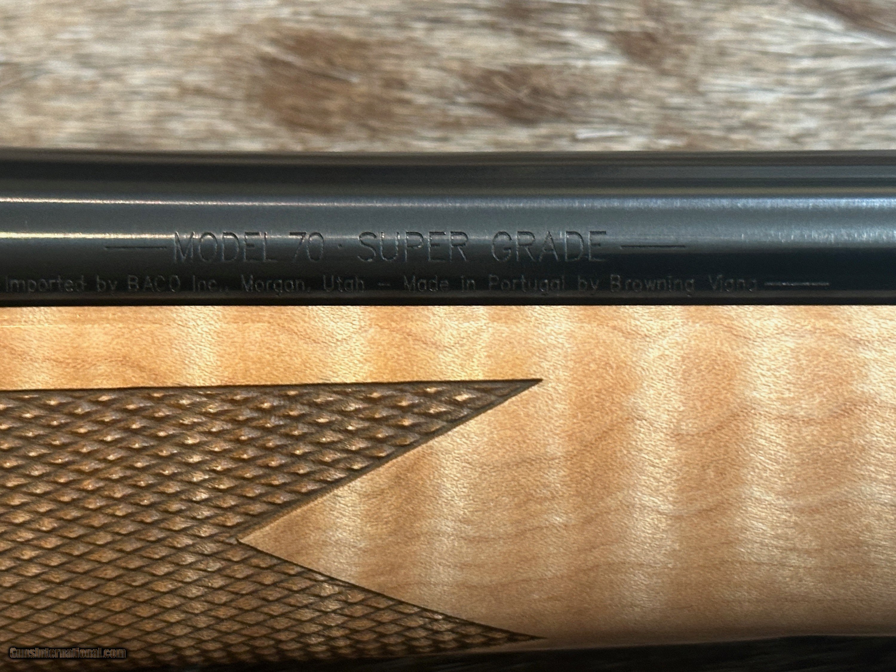 Description: NEW WINCHESTER MODEL 70 SUPER GRADE MAPLE 270 WIN RIFLE WITH GOOD WOOD - LAYAWAY AVAILABLE UNLIKE OTHER SELLERS, JD OUTFITTERS DOES NOT FALSELY CLAIM TO HAVE “INVENTORY” BUT THEN DROP-SHIPS SOME UNKNOWN AND UNSEEN RIFLE FROM A THIRD-PARTY WAREHOUSE. NOR DOES JD OUTFITTERS USE STOCK OR GENERIC PHOTOS. THE RIFLE YOU SEE IS IN INVENTORY, READY TO SHIP, AND IS THE RIFLE YOU WILL RECEIVE! FREE AFRICAN SAFARI WITH KUCHE SAFARIS (: KUCHE.CO.ZA) INCLUDED WITH THIS RIFLE! SAFARI IS FOR 1-HUNTER / 5-DAYS / 3-ANIMALS (IMPALA, BLESBUCK, WARTHOG). SAFARI IS CUSTOMIZABLE WITH ADDITIONAL DAYS AND ANIMALS AVAILABLE. THE CERTIFICATE IS GOOD FOR 3-YEARS FROM DATE OF PURCHASE AND WILL BE EMAILED TO YOU. NOTE: THE SAFARI IS FREE AND DOES NOT ADD ANY COST TO THE RIFLE. BUY A SCOPE AND RINGS/BASES FROM JD OUTFITTERS AND RECEIVE FREE MOUNTING. Features Of This BEAUTIFUL Model 70 SUPER GRADE Rifle Include: