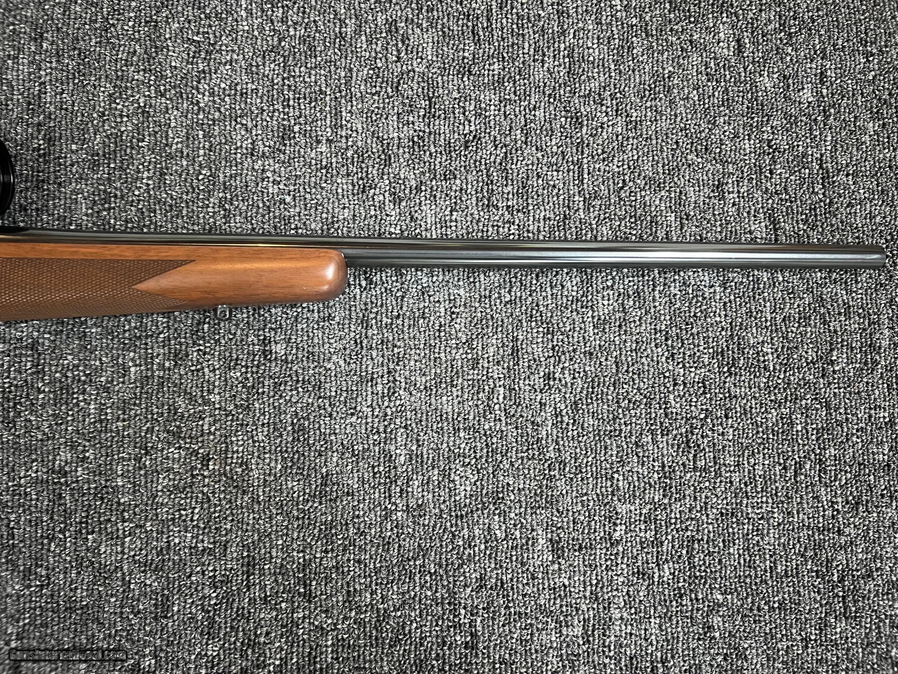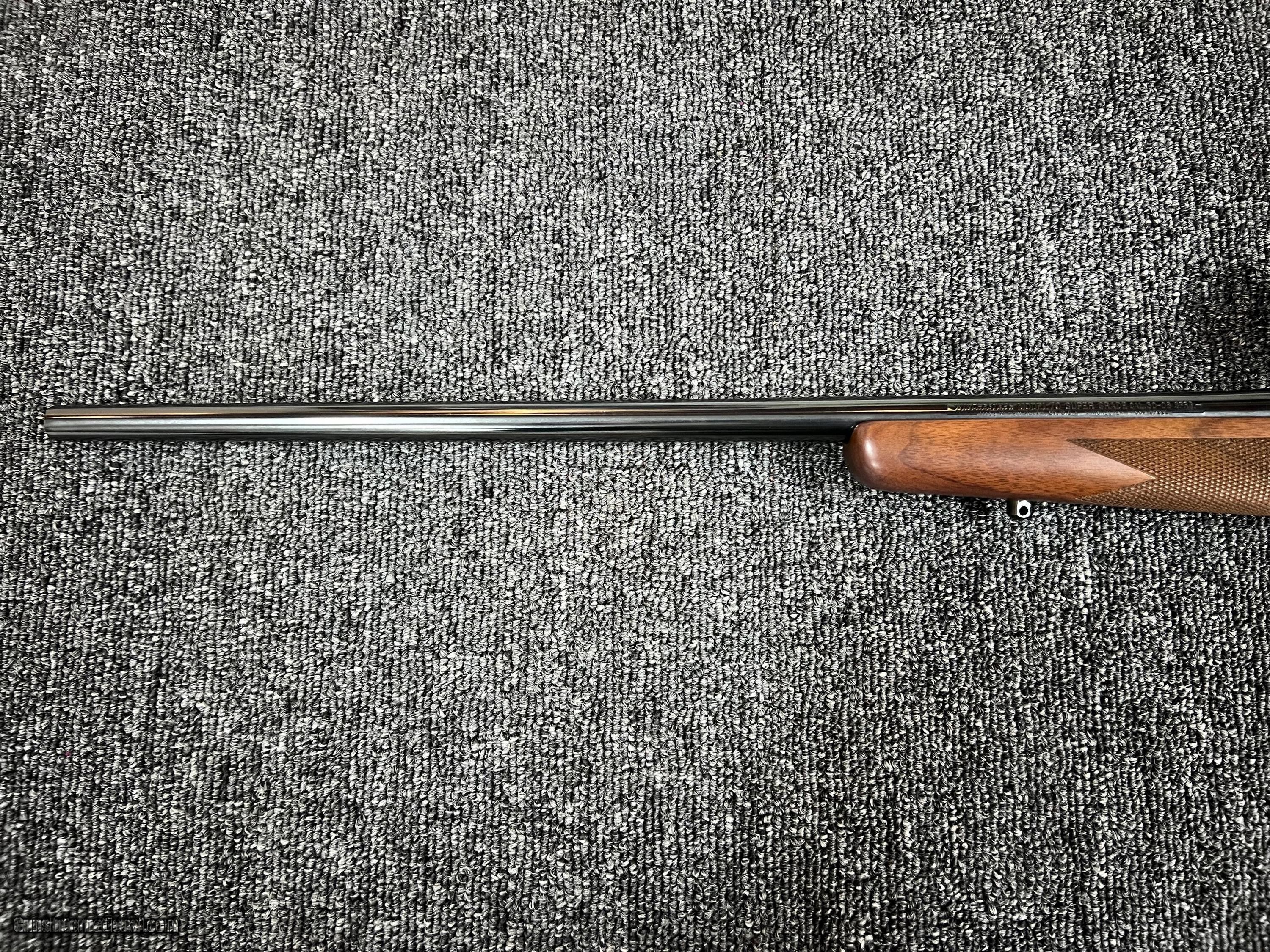 Description: New Haven manufactured Winchester model 70 super grade chambered in 30-06. 24" barrel with good rifling and no wear in the bluing. Wood has nice grain and in in excellent condition other than one pressure indentation on the L sife of stock right below reveiver as pictured. Factory red pad has a few minor chips from normal usage. This is controld feed model. Comes with Leupold VX1 3-9 riflescope. $1475...buyer pays shipping and insurance ***NO CREDIT CARD FEES*** SOLD Rifle Caliber: .30-06 Springfield Manufacturer: Winchester Model: 70 super grade Serial Number: g19926 Barrel Length: 24 |