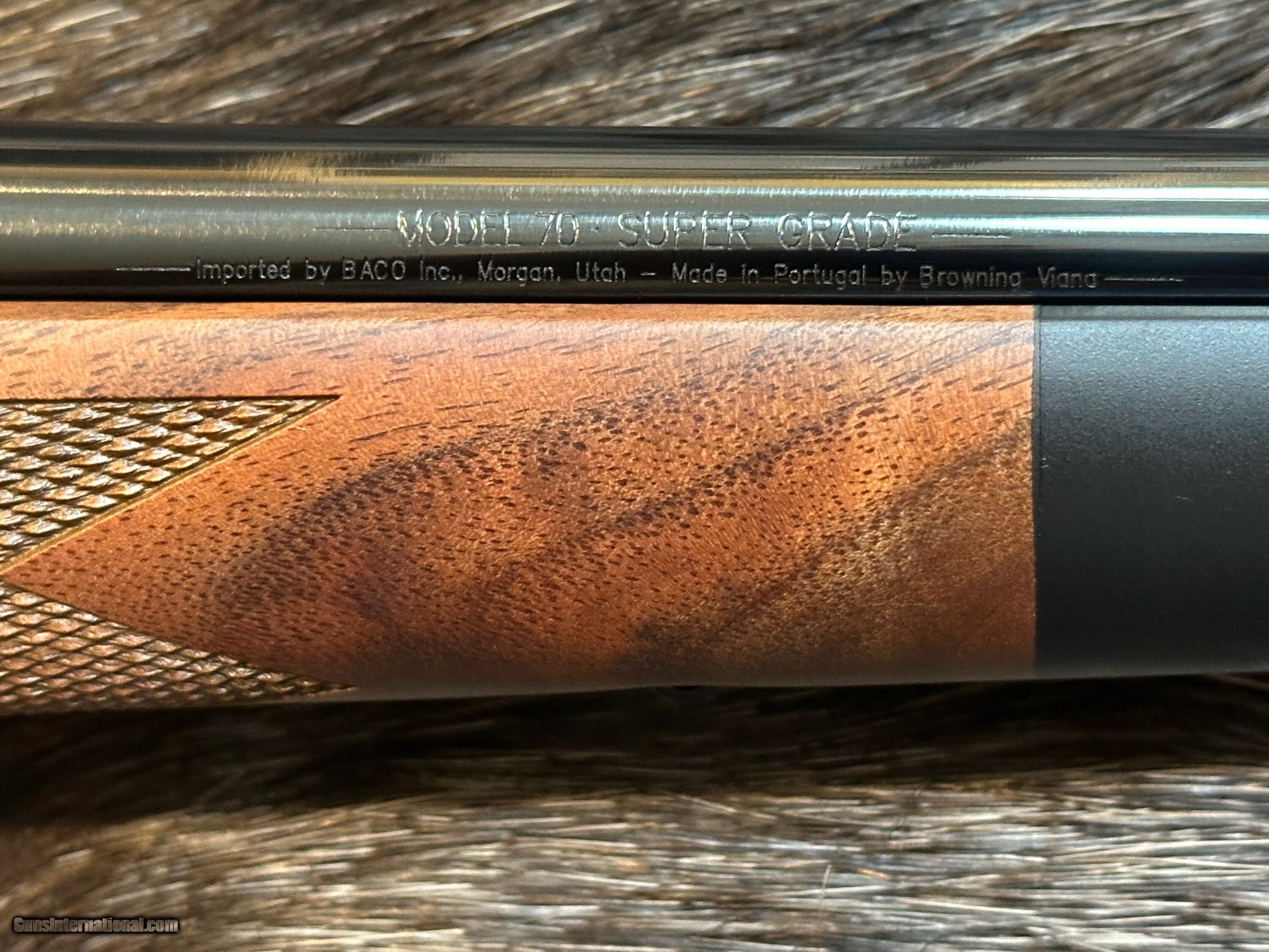 Description: NEW WINCHESTER MODEL 70 SUPER GRADE 270 WINCHESTER RIFLE WITH GOOD WOOD STOCK - LAYAWAY AVAILABLE. UNLIKE OTHER SELLERS, JD OUTFITTERS DOES NOT FALSELY CLAIM TO HAVE “INVENTORY” BUT THEN DROP-SHIPS SOME UNKNOWN AND UNSEEN RIFLE FROM A THIRD-PARTY WAREHOUSE. NOR DOES JD OUTFITTERS USE STOCK OR GENERIC PHOTOS. THE RIFLE YOU SEE IS IN INVENTORY, READY TO SHIP, AND IS THE RIFLE YOU WILL RECEIVE! FREE AFRICAN SAFARI WITH KUCHE SAFARIS (: KUCHE.CO.ZA) INCLUDED WITH THIS RIFLE! SAFARI IS FOR 1-HUNTER / 5-DAYS / 3-ANIMALS (IMPALA, BLESBUCK, WARTHOG). SAFARI IS CUSTOMIZABLE WITH ADDITIONAL DAYS AND ANIMALS AVAILABLE. THE CERTIFICATE IS GOOD FOR 3-YEARS FROM DATE OF PURCHASE AND WILL BE EMAILED TO YOU. NOTE: THE SAFARI IS FREE AND DOES NOT ADD ANY COST TO THE RIFLE. BUY A SCOPE AND RINGS/BASES FROM JD OUTFITTERS AND RECEIVE FREE MOUNTING. JD OUTFITTERS STOCKS LEUPOLD, SWAROVSKI, KAHLES, AND MANY OTHER SCOPES. Features Of This BEAUTIFUL Model 70 SUPER GRADE Rifle Include: