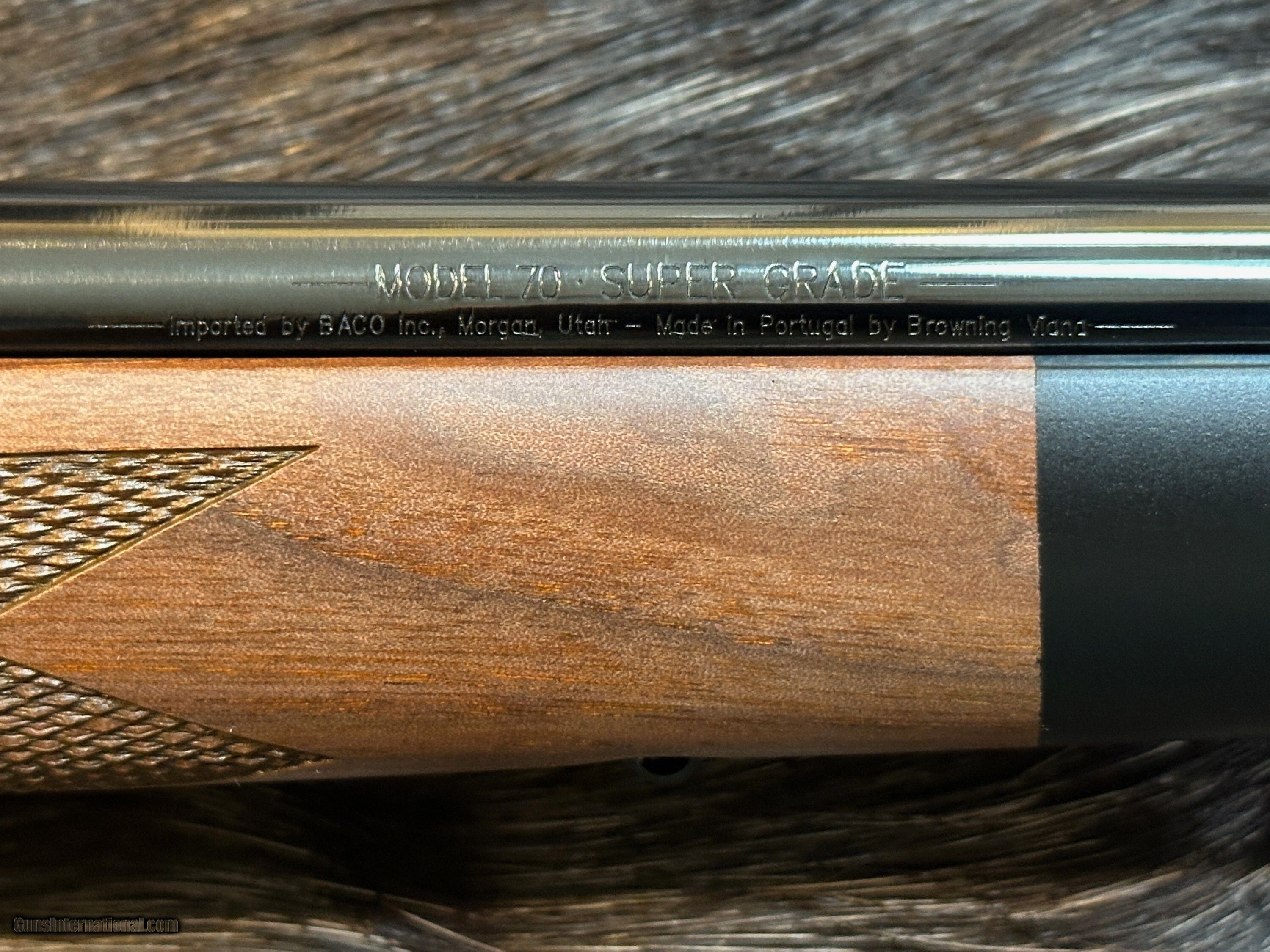 Description: NEW WINCHESTER MODEL 70 SUPER GRADE 300 WINCHESTER MAGNUM RIFLE WITH GOOD WOOD STOCK - LAYAWAY AVAILABLE. UNLIKE OTHER SELLERS, JD OUTFITTERS DOES NOT FALSELY CLAIM TO HAVE “INVENTORY” BUT THEN DROP-SHIPS SOME UNKNOWN AND UNSEEN RIFLE FROM A THIRD-PARTY WAREHOUSE. NOR DOES JD OUTFITTERS USE STOCK OR GENERIC PHOTOS. THE RIFLE YOU SEE IS IN INVENTORY, READY TO SHIP, AND IS THE RIFLE YOU WILL RECEIVE! FREE AFRICAN SAFARI WITH KUCHE SAFARIS (: KUCHE.CO.ZA) INCLUDED WITH THIS RIFLE! SAFARI IS FOR 1-HUNTER / 5-DAYS / 3-ANIMALS (IMPALA, BLESBUCK, WARTHOG). SAFARI IS CUSTOMIZABLE WITH ADDITIONAL DAYS AND ANIMALS AVAILABLE. THE CERTIFICATE IS GOOD FOR 3-YEARS FROM DATE OF PURCHASE AND WILL BE EMAILED TO YOU. NOTE: THE SAFARI IS FREE AND DOES NOT ADD ANY COST TO THE RIFLE. BUY A SCOPE AND RINGS/BASES FROM JD OUTFITTERS AND RECEIVE FREE MOUNTING. JD OUTFITTERS STOCKS LEUPOLD, SWAROVSKI, KAHLES, AND MANY OTHER SCOPES. Features Of This BEAUTIFUL Model 70 SUPER GRADE Rifle Include: