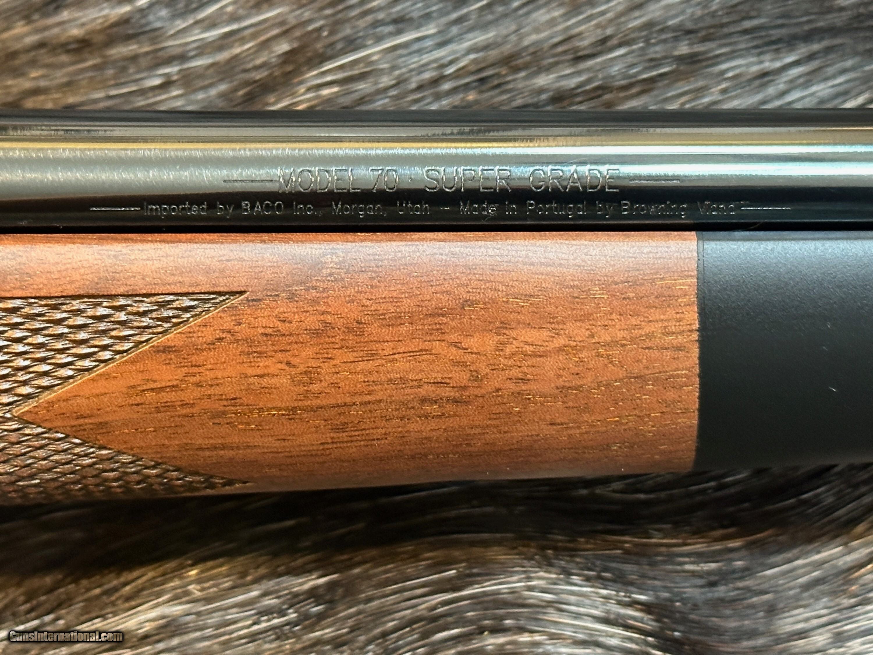 Description: NEW WINCHESTER MODEL 70 SUPER GRADE 300 WINCHESTER MAGNUM RIFLE WITH GOOD WOOD STOCK - LAYAWAY AVAILABLE. UNLIKE OTHER SELLERS, JD OUTFITTERS DOES NOT FALSELY CLAIM TO HAVE “INVENTORY” BUT THEN DROP-SHIPS SOME UNKNOWN AND UNSEEN RIFLE FROM A THIRD-PARTY WAREHOUSE. NOR DOES JD OUTFITTERS USE STOCK OR GENERIC PHOTOS. THE RIFLE YOU SEE IS IN INVENTORY, READY TO SHIP, AND IS THE RIFLE YOU WILL RECEIVE! FREE AFRICAN SAFARI WITH KUCHE SAFARIS (: KUCHE.CO.ZA) INCLUDED WITH THIS RIFLE! SAFARI IS FOR 1-HUNTER / 5-DAYS / 3-ANIMALS (IMPALA, BLESBUCK, WARTHOG). SAFARI IS CUSTOMIZABLE WITH ADDITIONAL DAYS AND ANIMALS AVAILABLE. THE CERTIFICATE IS GOOD FOR 3-YEARS FROM DATE OF PURCHASE AND WILL BE EMAILED TO YOU. NOTE: THE SAFARI IS FREE AND DOES NOT ADD ANY COST TO THE RIFLE. BUY A SCOPE AND RINGS/BASES FROM JD OUTFITTERS AND RECEIVE FREE MOUNTING. JD OUTFITTERS STOCKS LEUPOLD, SWAROVSKI, KAHLES, AND MANY OTHER SCOPES. Features Of This BEAUTIFUL Model 70 SUPER GRADE Rifle Include: