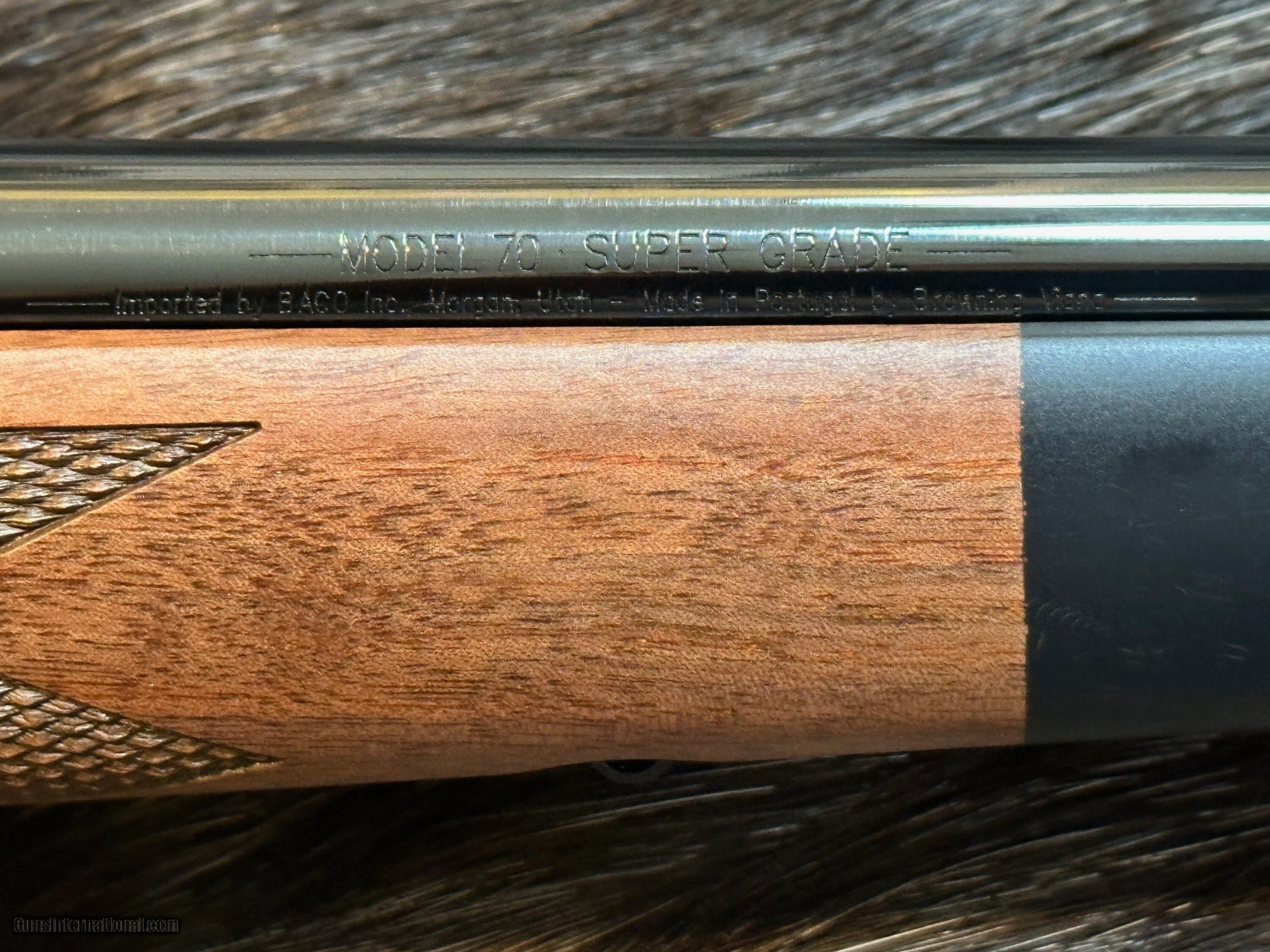 Description: NEW WINCHESTER MODEL 70 SUPER GRADE 338 WINCHESTER MAGNUM RIFLE WITH GREAT WOOD - LAYAWAY AVAILABLE. UNLIKE OTHER SELLERS, JD OUTFITTERS DOES NOT FALSELY CLAIM TO HAVE “INVENTORY” BUT THEN DROP-SHIPS SOME UNKNOWN AND UNSEEN RIFLE FROM A THIRD-PARTY WAREHOUSE. NOR DOES JD OUTFITTERS USE STOCK OR GENERIC PHOTOS. THE RIFLE YOU SEE IS IN INVENTORY, READY TO SHIP, AND IS THE RIFLE YOU WILL RECEIVE! FREE AFRICAN SAFARI WITH KUCHE SAFARIS (: KUCHE.CO.ZA) INCLUDED WITH THIS RIFLE! SAFARI IS FOR 1-HUNTER / 5-DAYS / 3-ANIMALS (IMPALA, BLESBUCK, WARTHOG). SAFARI IS CUSTOMIZABLE WITH ADDITIONAL DAYS AND ANIMALS AVAILABLE. THE CERTIFICATE IS GOOD FOR 3-YEARS FROM DATE OF PURCHASE AND WILL BE EMAILED TO YOU. NOTE: THE SAFARI IS FREE AND DOES NOT ADD ANY COST TO THE RIFLE. BUY A SCOPE AND RINGS/BASES FROM JD OUTFITTERS AND RECEIVE FREE MOUNTING. JD OUTFITTERS STOCKS LEUPOLD, SWAROVSKI, KAHLES, AND MANY OTHER SCOPES. Features Of This BEAUTIFUL Model 70 SUPER GRADE Rifle Include:
