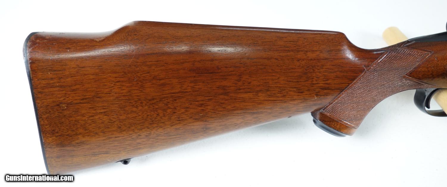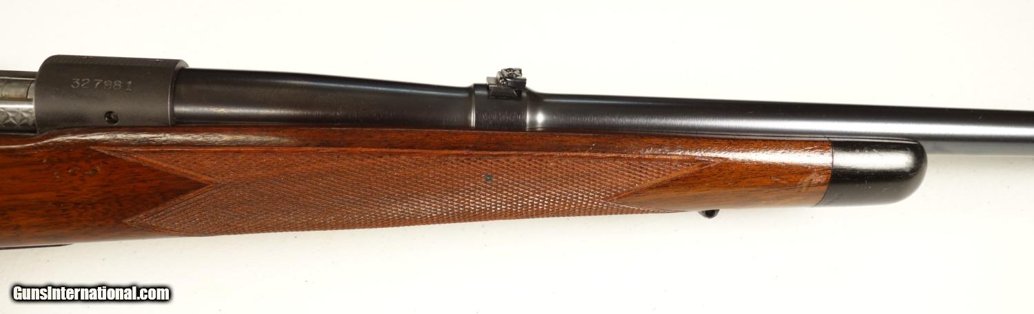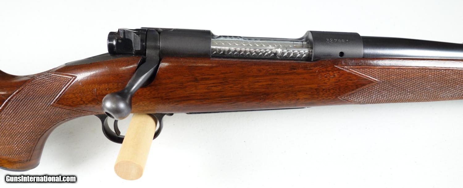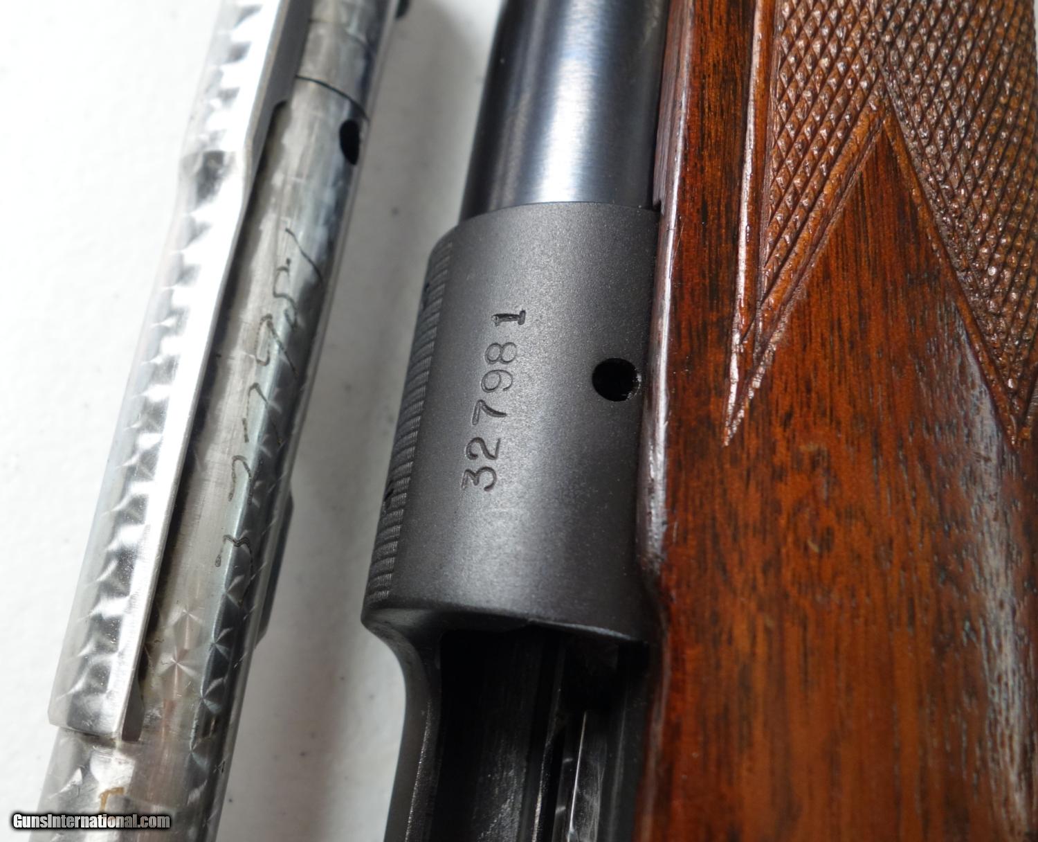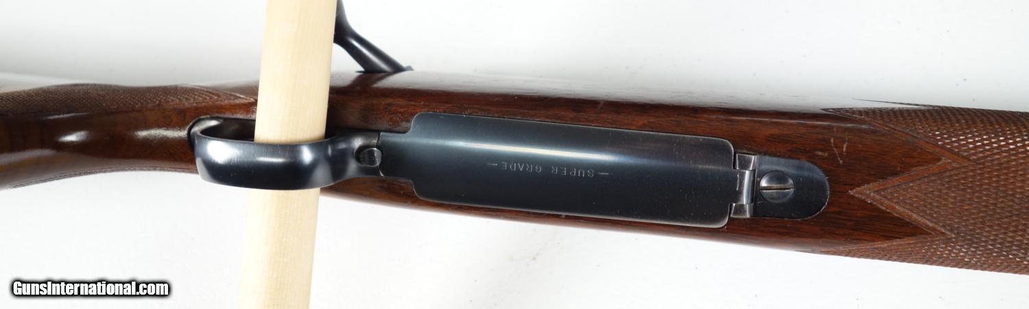 Description: Pre 64 Winchester 70 SG in 30-06. S/N 327xxx Mfg. 1955. 98% Blue overall with floor plate showing light edge wear, Conservative 96% Varnish rating considering some isolated lifting of finish topcoat in a few areas. Easy touch up. Swivels not included. SOLD Curio/Relic: Yes |