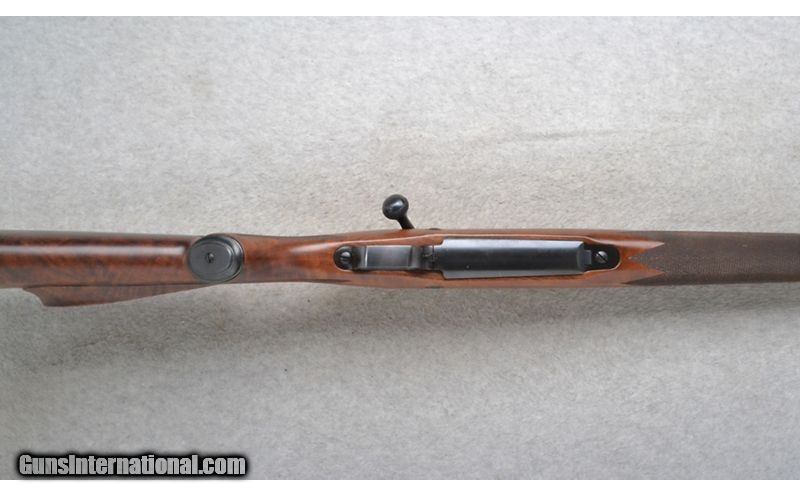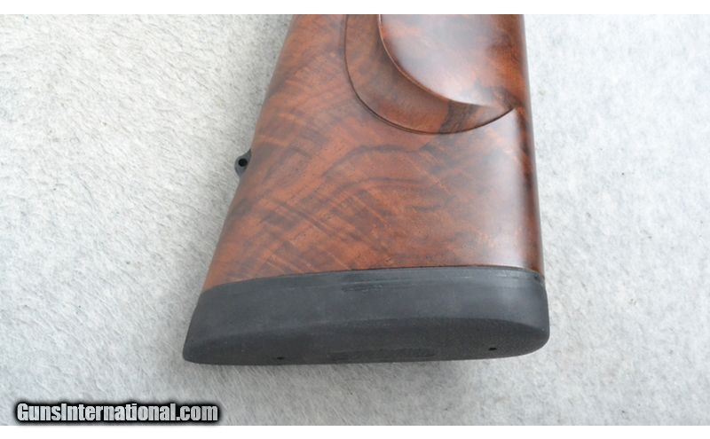 Description: This Winchester Model 70 Classic Super Grade is a right hand bolt action rifle in .25-06 Rem. Cal. It has a 24 inch barrel. Scope mount bases are attached. No iron sights. The butt stock is a checkered grip deluxe walnut pistol grip with a raised cheekpiece and black steel cap. The forearm is a checkered grip deluxe walnut with a black tip. .25-06 Remington SOLD Chambers: Internal magazine with a hinged floorplate. Metal Condition: Excellent. Wood Condition: Excellent. Bore Condition: Excellent. Barrels: 24 inch. Triggers: Grooved. Stock Dimensions: LOP 13 5/8 inches. Fore End: Checkered grip walnut with a black tip. Butt Pad: Winchester black rubber recoil pad. Weight: 8 lb. 12 oz. Sights: Scope mount bases attached. No iron sights. Item Location: Richfield, WI |