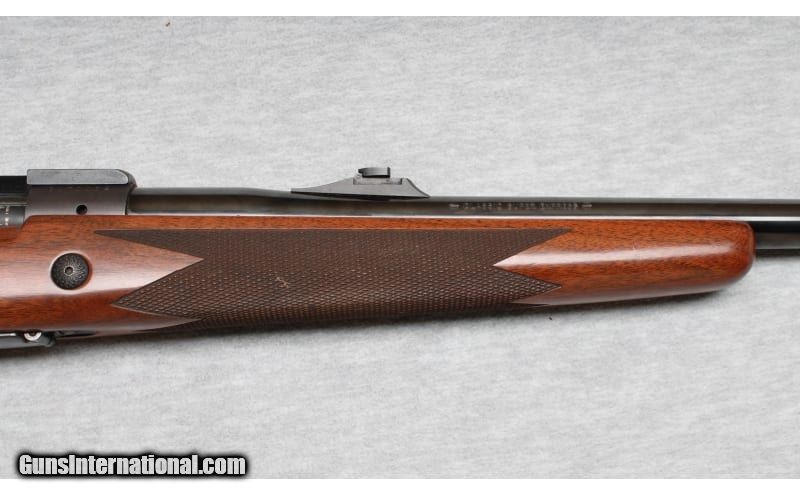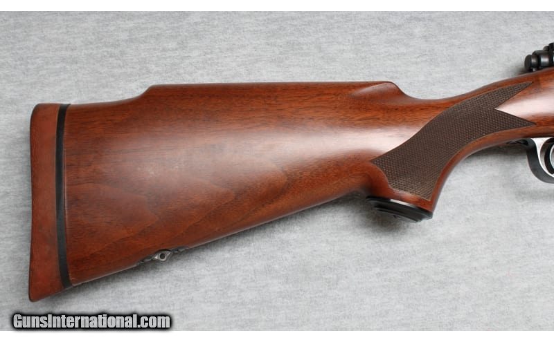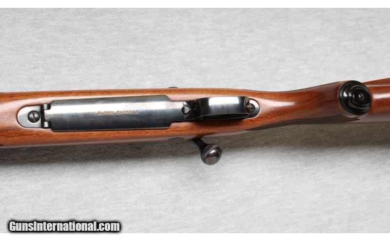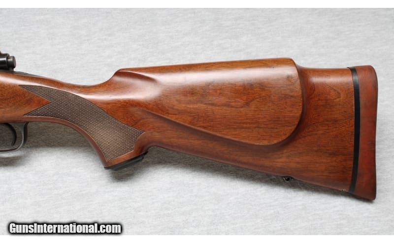 Description: Excellent condition, light finish wear, small nicks and scratches - shows light field use. Bolt action magnum rifle with 24" heavy barrel chambered for the powerful .375 H&H cartridge. Smooth action, crisp trigger pull, right hand cheek rest, Winchester factory recoil pad. .375 H&H Magnum SOLD Chambers: Bolt action Metal Condition: Excellent Wood Condition: Excellent Bore Condition: Bright Barrels: 24 Triggers: Factory Stock Dimensions: 13 1/2" LOP Fore End: Checkered Butt Pad: Factory pad Sights: Iron sights and scope mounting base installed Item Location: La Vista, NE |