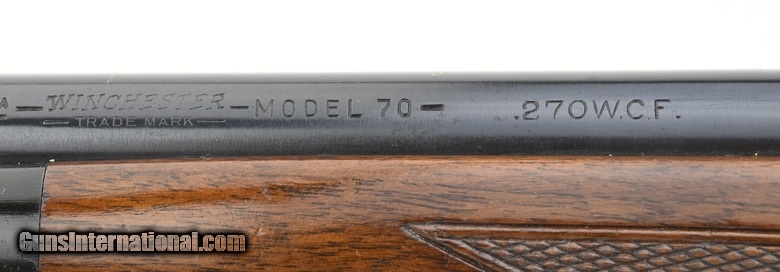 Winchester 70 Super Grade .270 WCF caliber rifle. Pre-64 Super Grade made in 1950. The metal is excellent with 98% original blue. The stock has light wear and is very good. Has a Kollmorgen 6X scope. A classic example of the rifleman’s rifle.