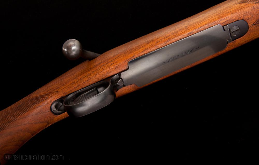 Description: SOLD Manufacturer: Winchester Model: 70 Super Grade Serial Number: 104359 Caliber Info: 375 Mag Condition: 95% Barrels: 24 1/4 in Action: Bolt LOP: 13 1/2 Weight: 8lbs 12 oz Manufacture Date: 1949 |