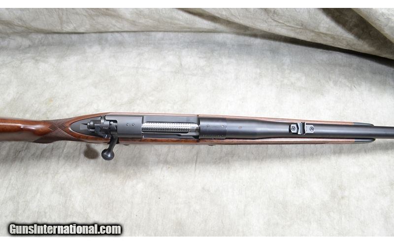 Description: Nice safari gun with express rifle sights, commemorating Cabela's 50th Anniversary. Super Grade walnut Monte Carlo stock with some figure. It has jeweled bolt, claw extractor and internal box magazine with hinged floor plate. .458 Winchester Magnum SOLD Chambers: 3 Metal Condition: Excellent. Wood Condition: Excellent. Bore Condition: Shiny and bright. Barrels: 24-inch heavy contour Triggers: Factory trigger. Stock Dimensions: 13-3/4 inch LOP. Butt Pad: Soft rubber pad. Weight: 8 lb - 13 oz Sights: Hooded bead and express rifle open sights. Drilled and tapped for your choice of scope. Item Location: Rogers |