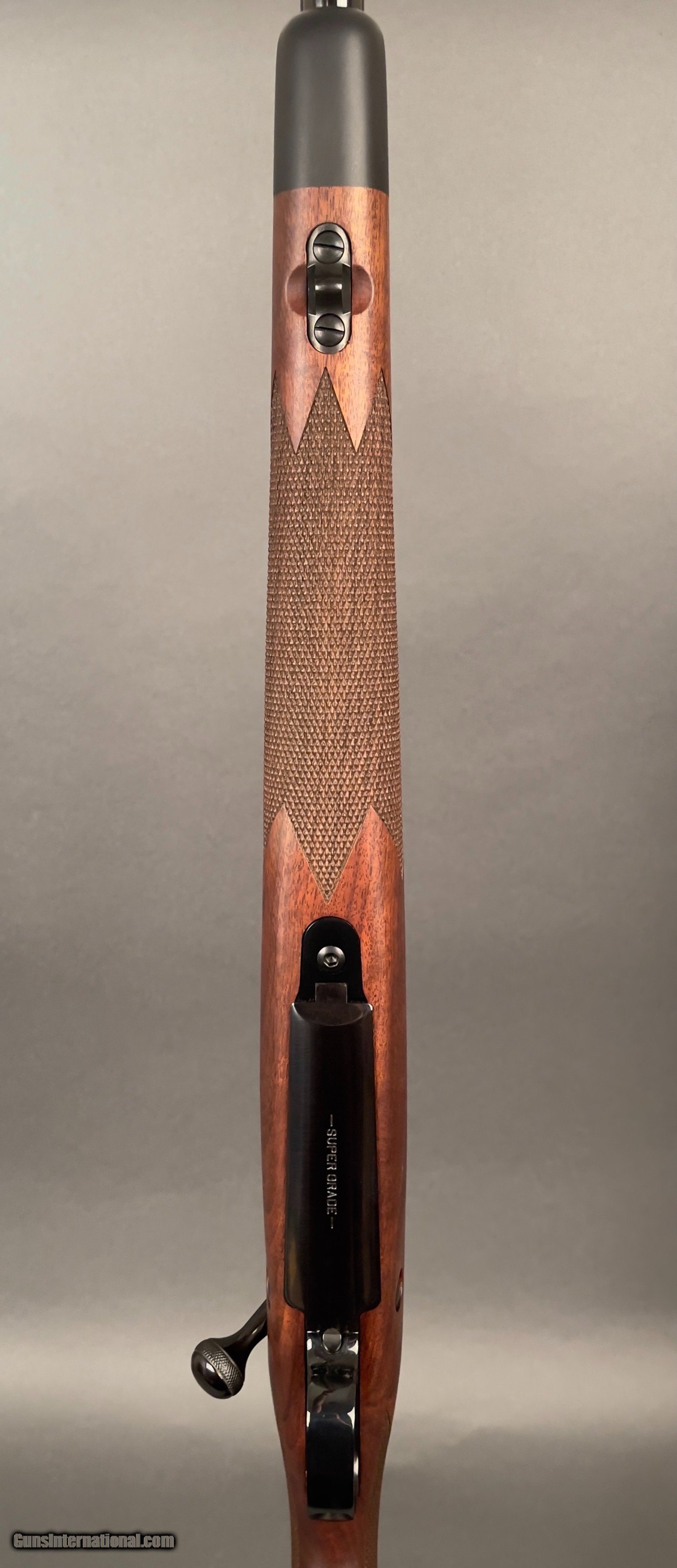 Description: "Used" with sticker still on barrel, We got this in from a private collection. Winchester M70 .264 Supergrade. Very nice rich dark wood stock. Judging by serial number (shown in photo) I believe this is a 2008 or later super grade with a pre 64 action / configuration. Was purchased for a custom build but never got around to it. SOLD Rifle Caliber: .264 Winchester Magnum |