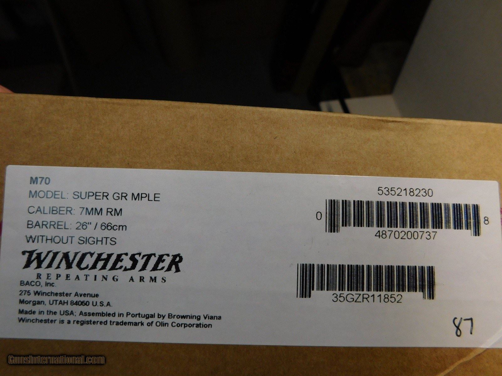 Description: Winchester M70 Maple Super Grade, 7MM Remington Magnum,26" barrel,Claw Extractor, New Unfired with Box and papers!! Store hours Thurs-Fri-10AM-8PM Sat-9AM-12PM All Other times please leave a message,Thank You! No California Sales Lower 48 State Sales only Pa. Residents 6% Sales Tax applicable Shipping $ 35.00 SOLD Rifle Caliber: 7mm Remington Magnum Manufacturer: Winchester Model: M70 Serial Number: 35GZR11852 Barrel Length: 26 |