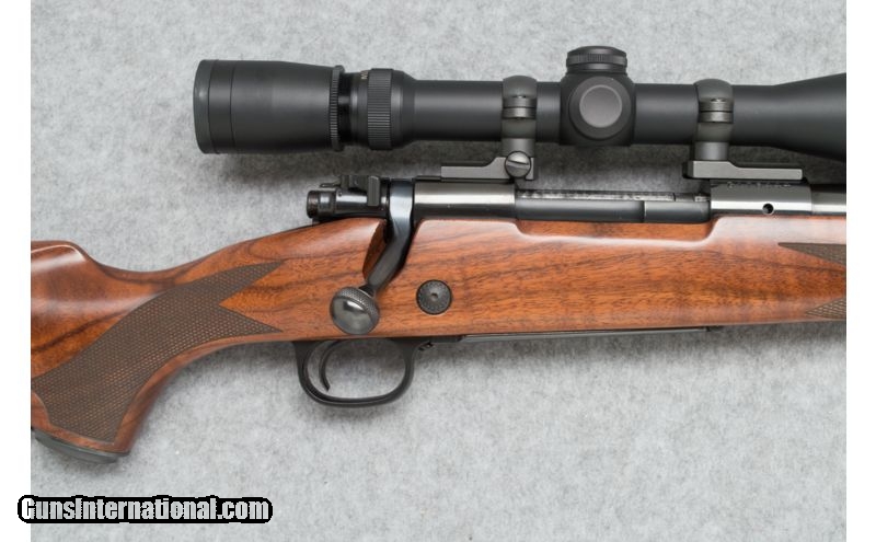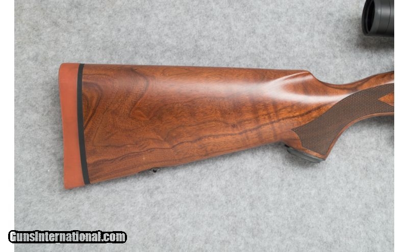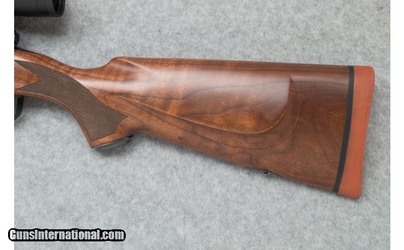 Description: Used. SOLD Caliber Info: .270 Win. Metal Condition: Excellent Wood Condition: Very good; a few handling marks Bore Condition: Clean and sharp Barrels: 22" - adjustable muzzle brake Triggers: Wide grooved target style Stock: Classic checkered pistol grip walnut Stock Dimensions: LOP - 14 1/8 Fore End: Checkered walnut with black end cap Butt Pad: Red rubber pad Weight: 9 lbs. 2 oz. (with scope) Sights: No sights; Leupold scope Extras: Leupold VX-III 3.5-10X x 40mm scope with mounts. Item Location: Sun Prairie, WI |