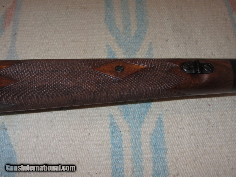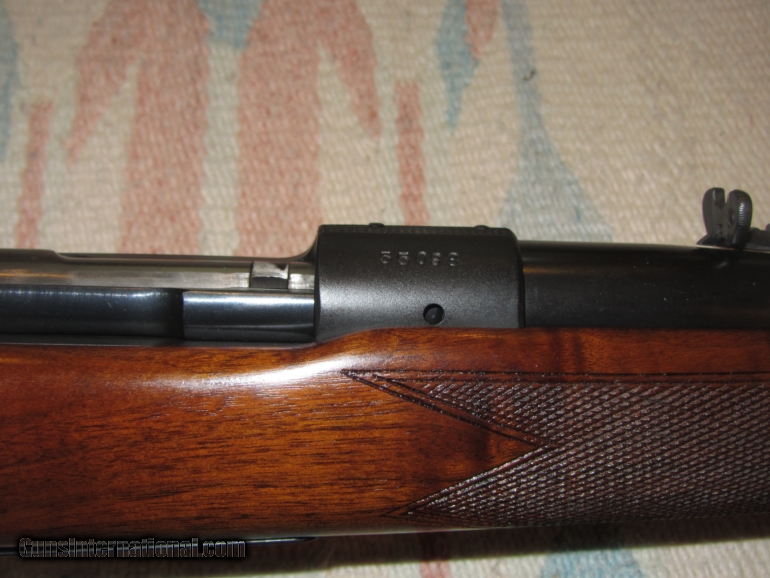 Description: A fine example of the Pre-War Model 70, in carbine configuration no less. Beautiful original stock. Overall condition: 96-98%. Bluing could be called 100%. Bore is mint, shiny with sharp lands and bright grroves. Pictures say it all. SOLD Curio/Relic: Yes |